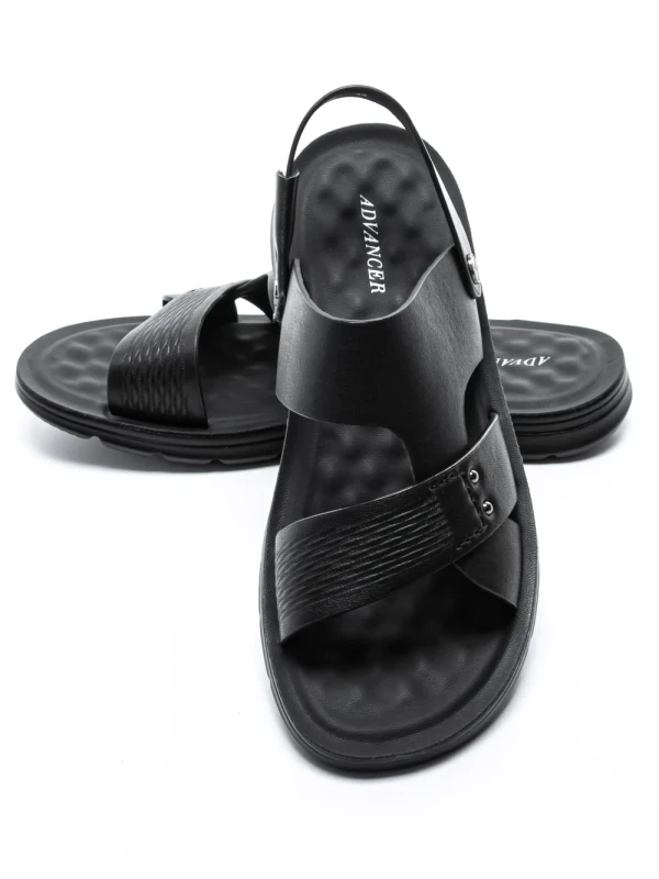 moški sandali iz pravega usnja 7565D Črna | Advancer