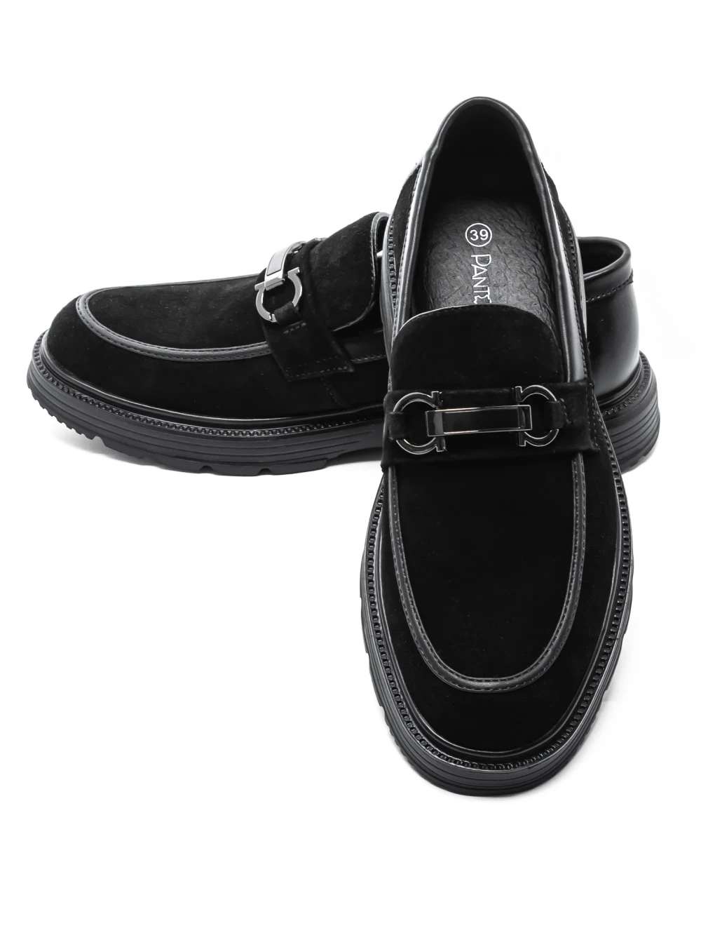 Moški mokasini iz naravnega usnja 5NXE19 Črna | Pantoful