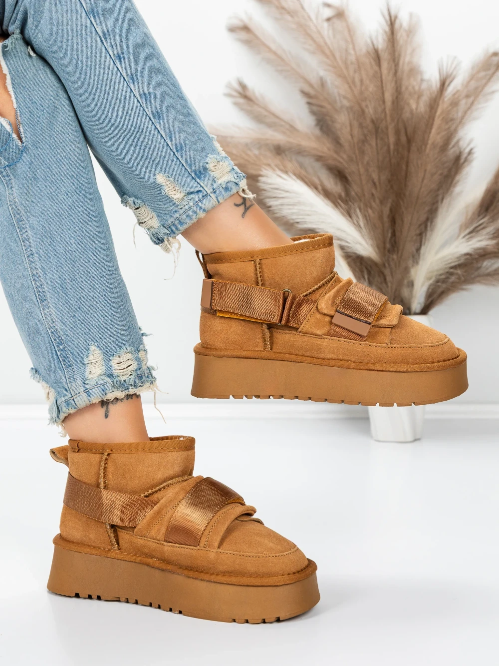 Ženski škornji s peto in platformo Z5100 Rjava | Mia Shoes