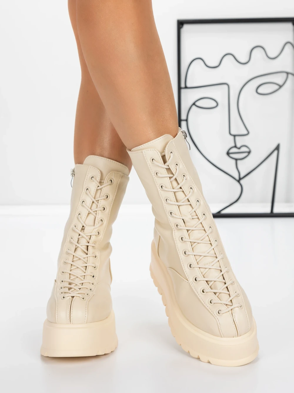 Ženski kratki škornji s platformo 3AL77 Bež | Mei