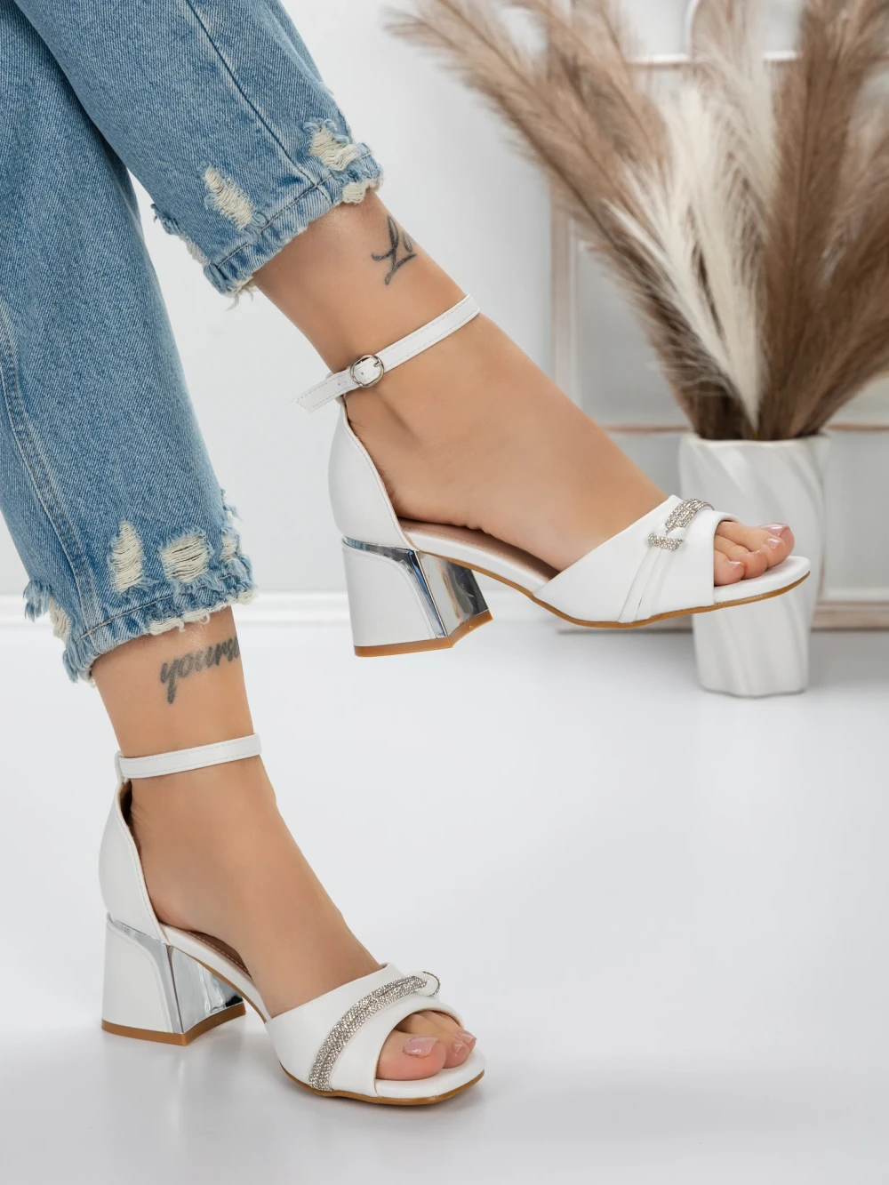 Ženski sandali z debelo peto 5GZ58 Bela | Mei