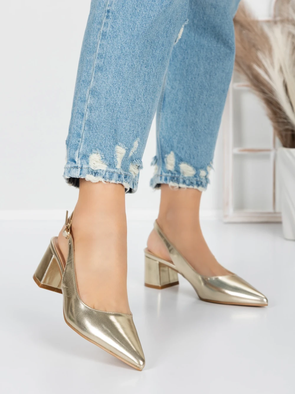 Čevlji z debelo peto 5YZ11 Zlata | Mei
