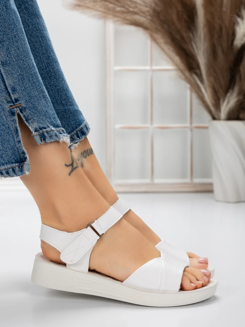Ženski sandali z nizkim podplatom 5XJ56 Bela | Mei