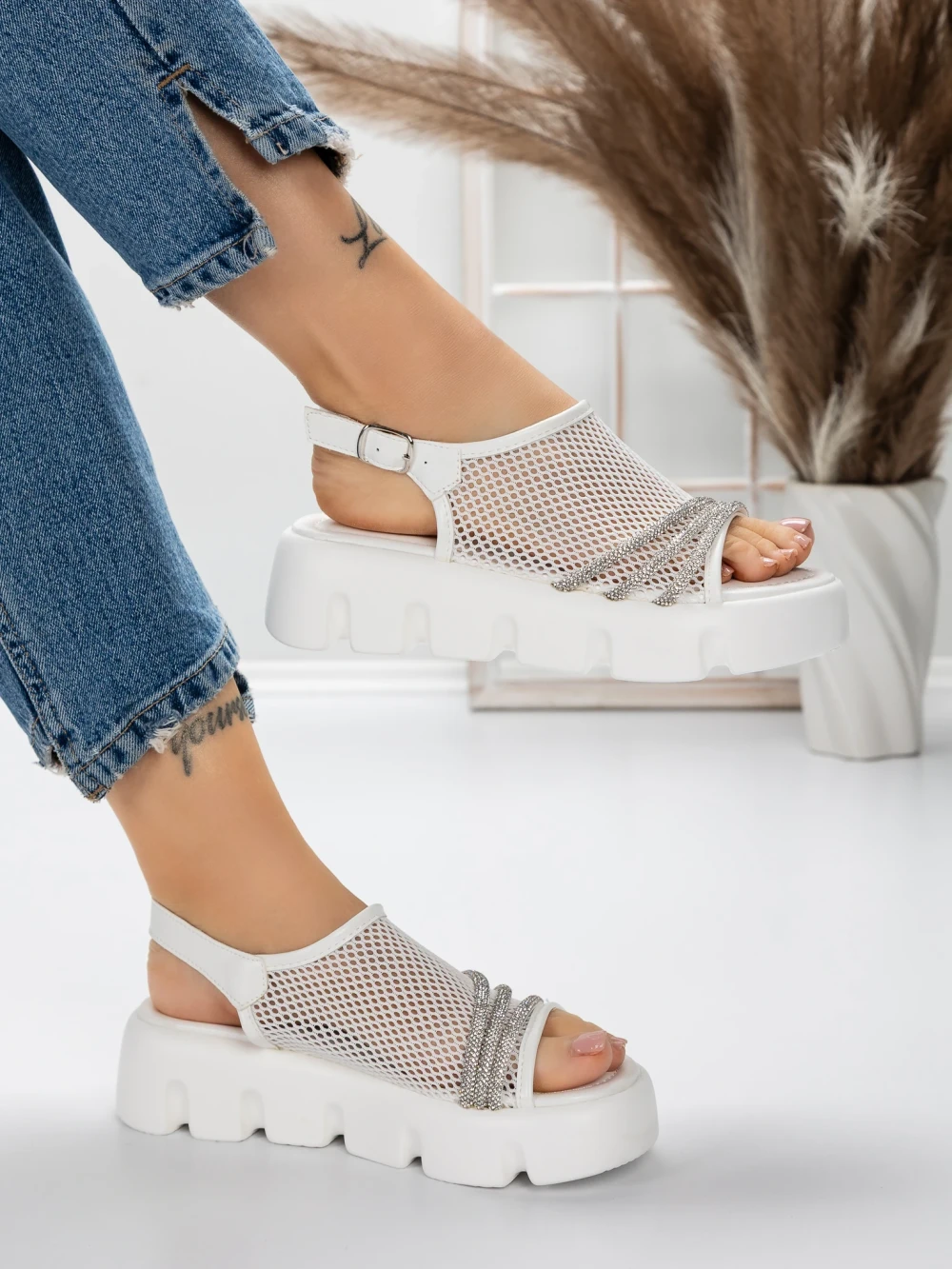 Ženski sandali z nizkim podplatom 5HXS21 Bela | Mei