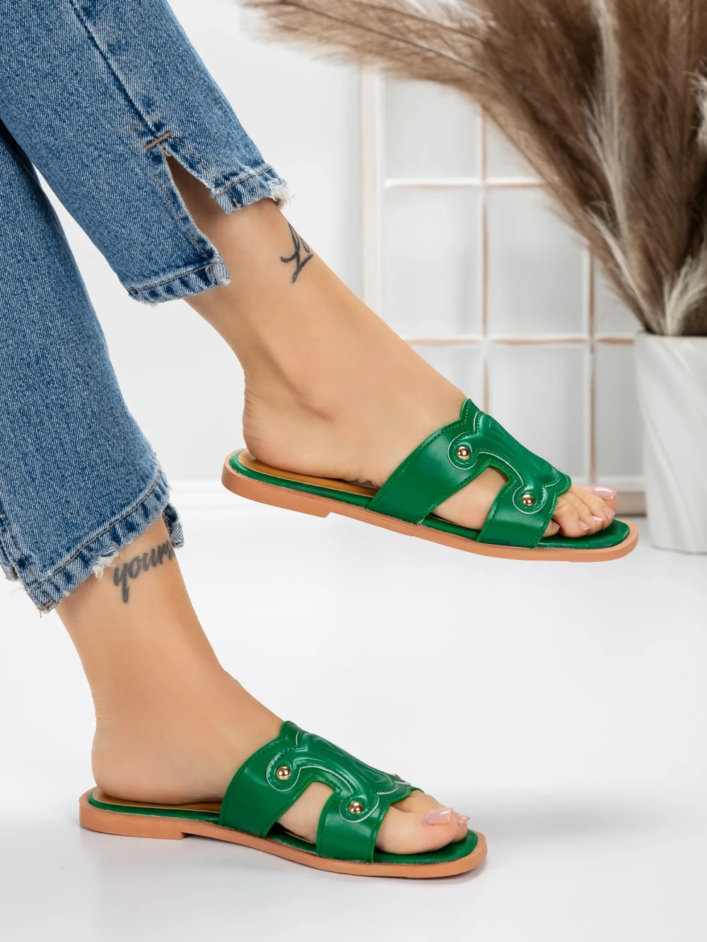 V MeiMall lahko najdete ženski copati z nizkim podplatom 3AW307 Zelena | Mei. Živahna barva Zelena, skupaj s kakovostnimi materiali in modernim dizajnom, vas bo navdušila! MeiMall je spletna trgovina, ki ponuja široko paleto izdelkov za ženske, moške in otroke. Tukaj lahko najdete čevlje, oblačila, torbe in dodatke. Dostava je hitra, rok vračila pa 14 dni.