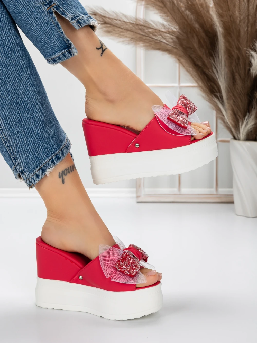 Ženski copati s platformo 3AW326 Rdeča | Mei