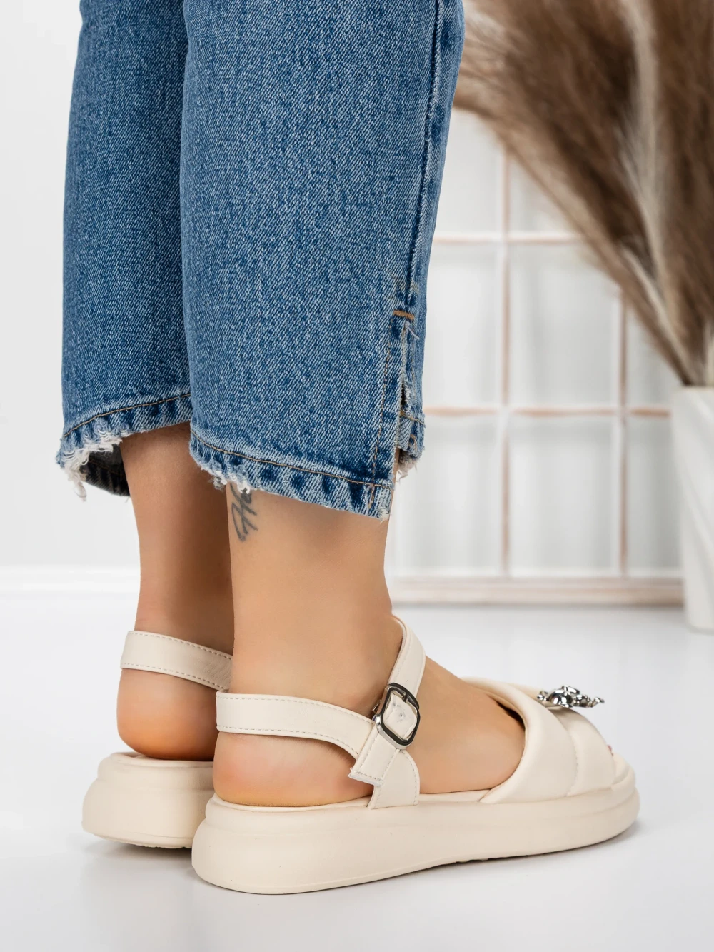 Ženski sandali z nizkim podplatom 5WL23 Bež | Mei