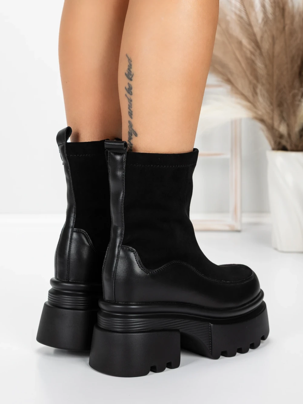 Ženski kratki škornji s platformo 5W61 Črna | Mei