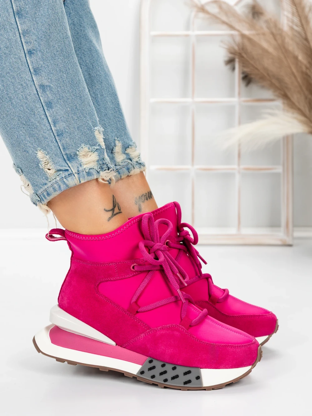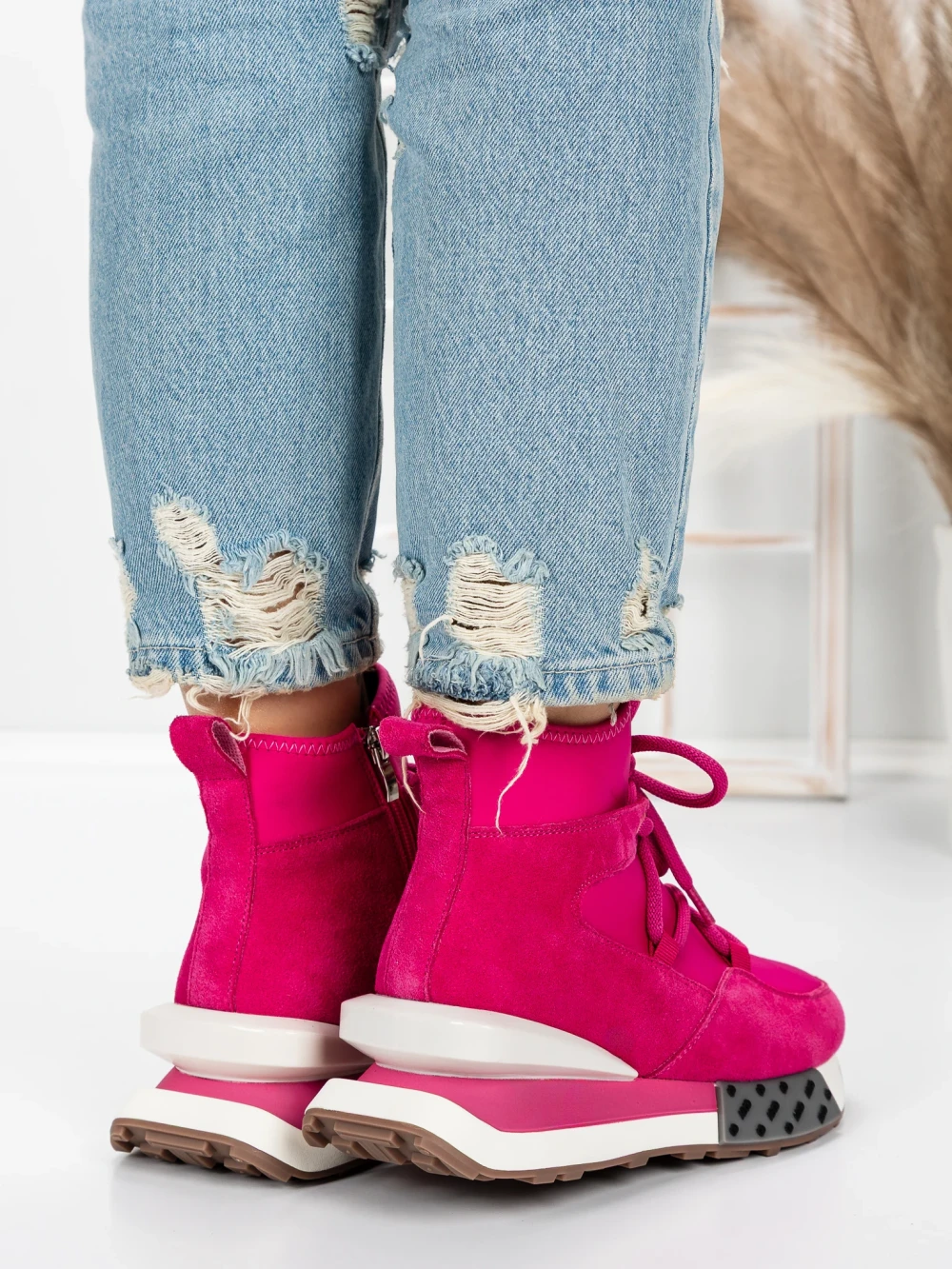 Ženski škornji iz naravnega usnja 5SZ8 Roza | Pantoful