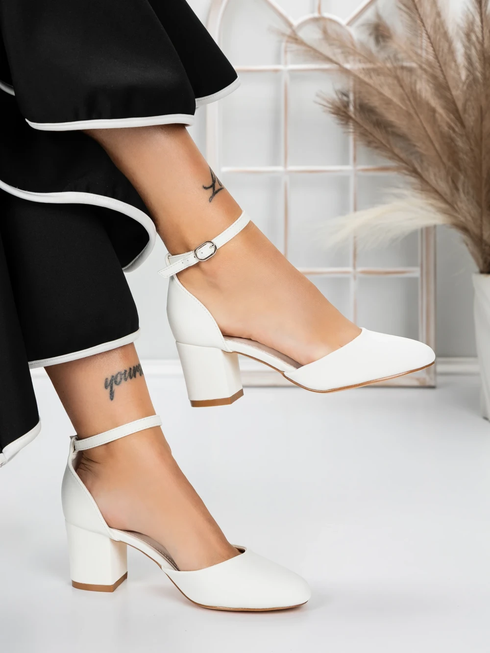 Pantofi cu Toc Gros 3XKK81 WHITE | MEI