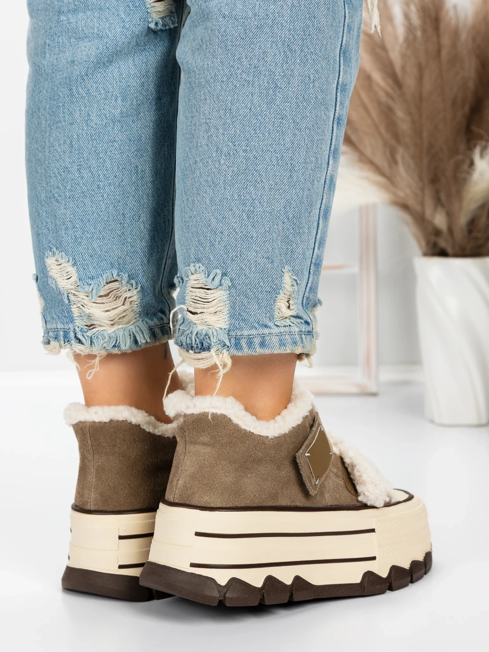 Ženski škornji iz naravnega usnja 5W53 Kaki | Pantoful