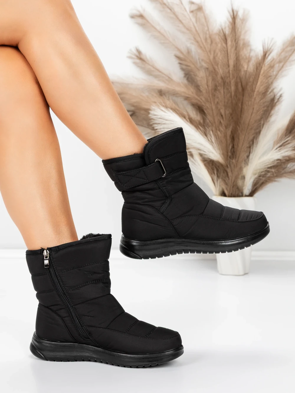 Ženski kratki škornji s krznom 5XJ81 Črna | Mei