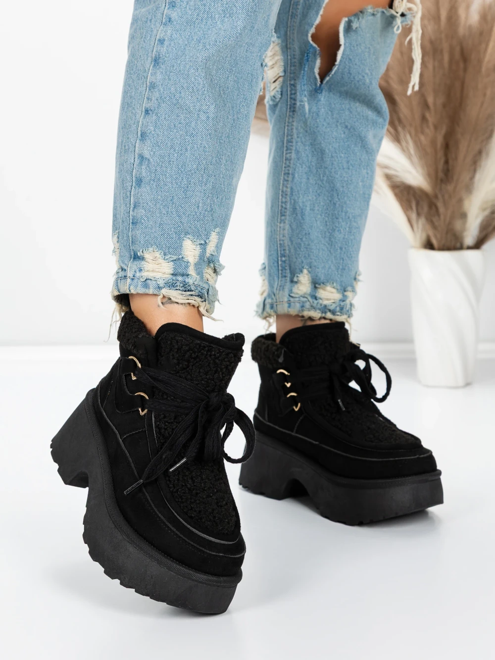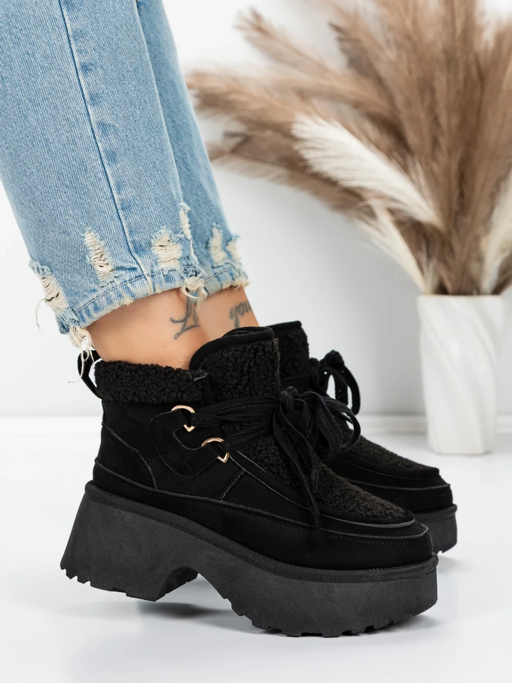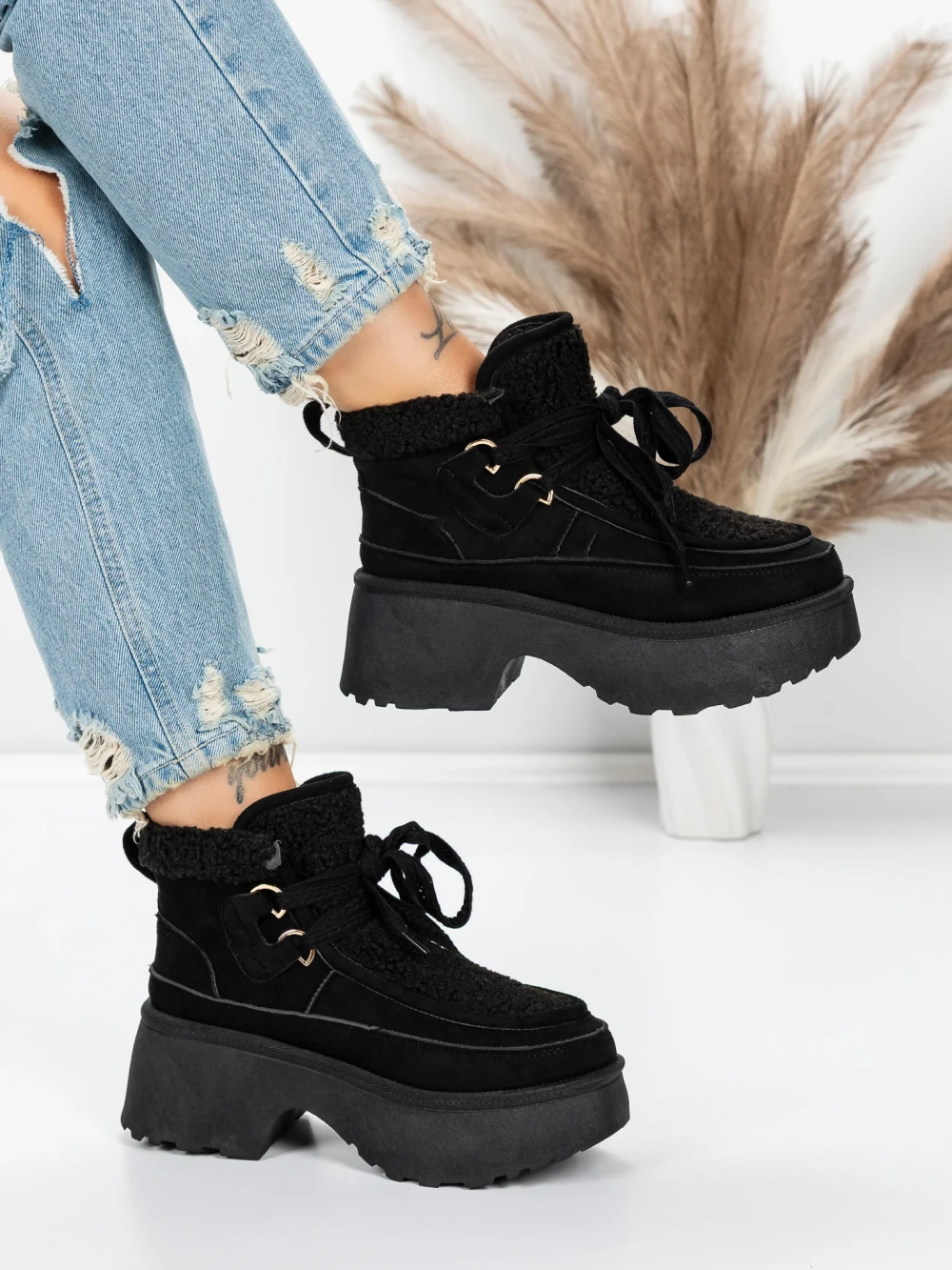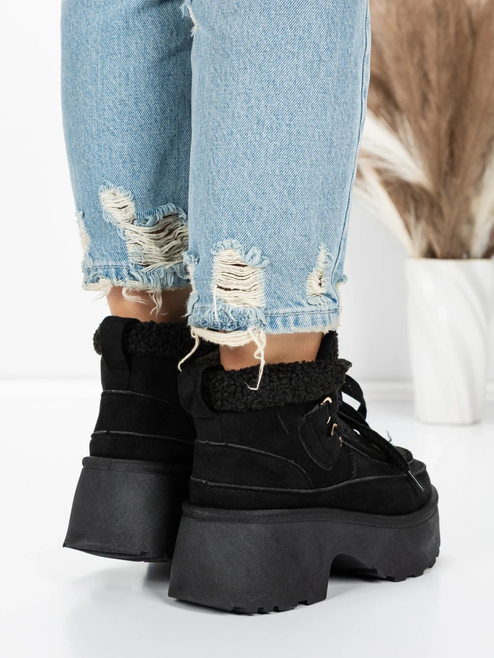 Ženski kratki škornji s platformo 5GB3 Črna | Mei