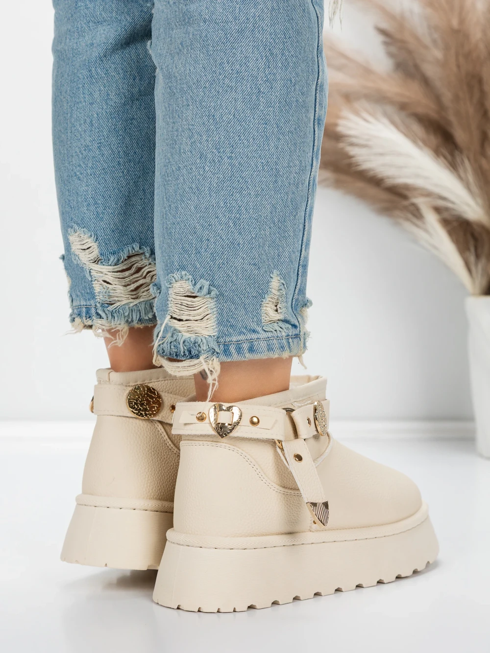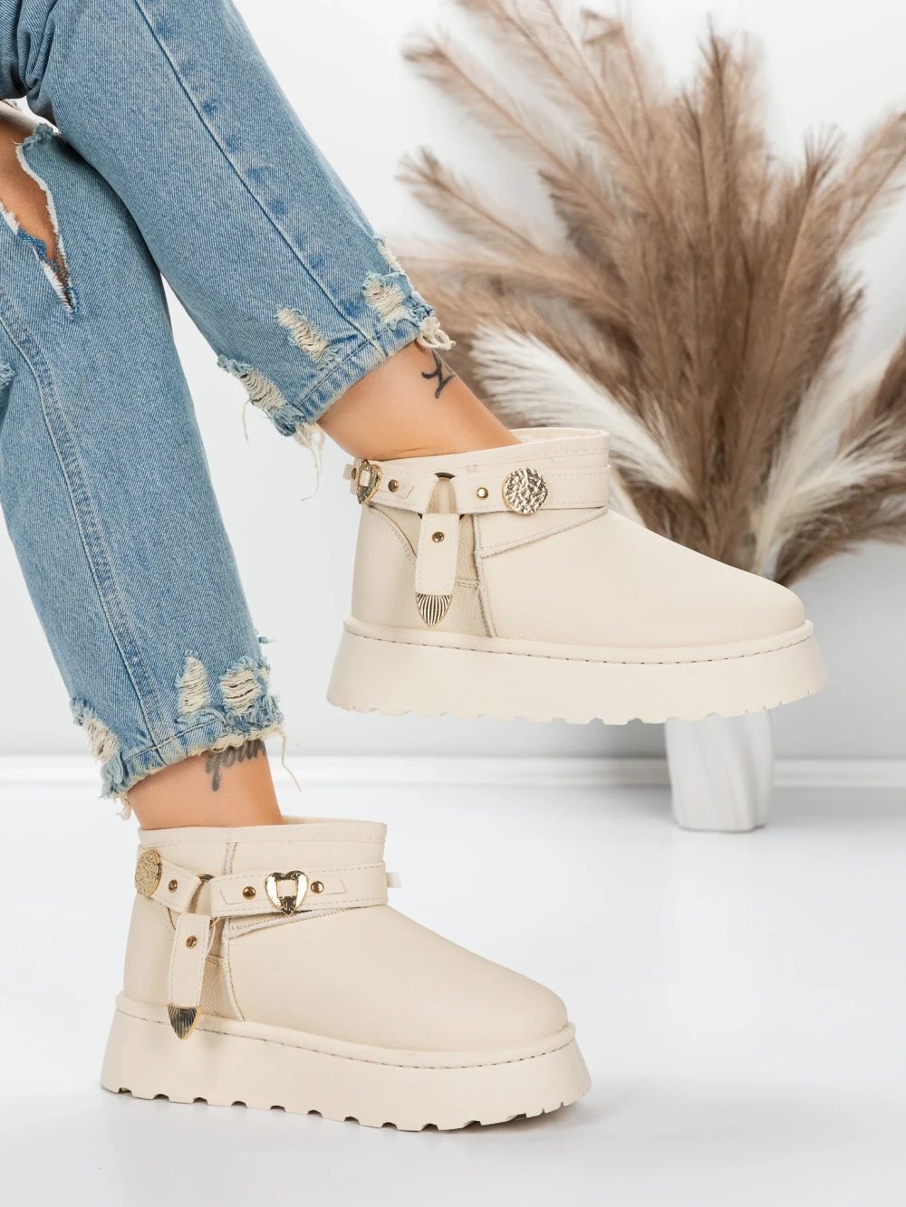 Ženski ug kratki škornji JD-3 Bež | Mulanka