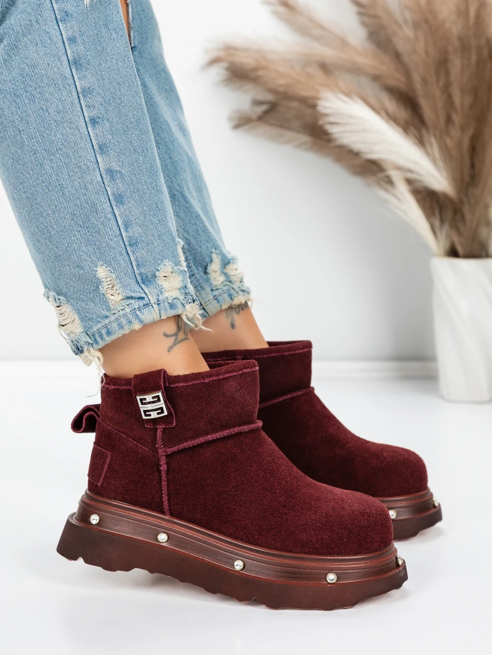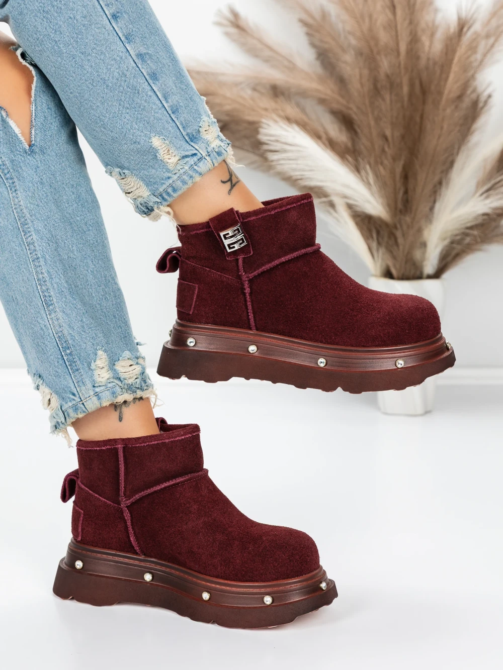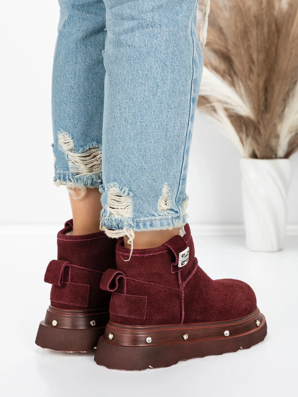 Ženski škornji iz naravnega usnja 58W28 Češnjev | Pantoful