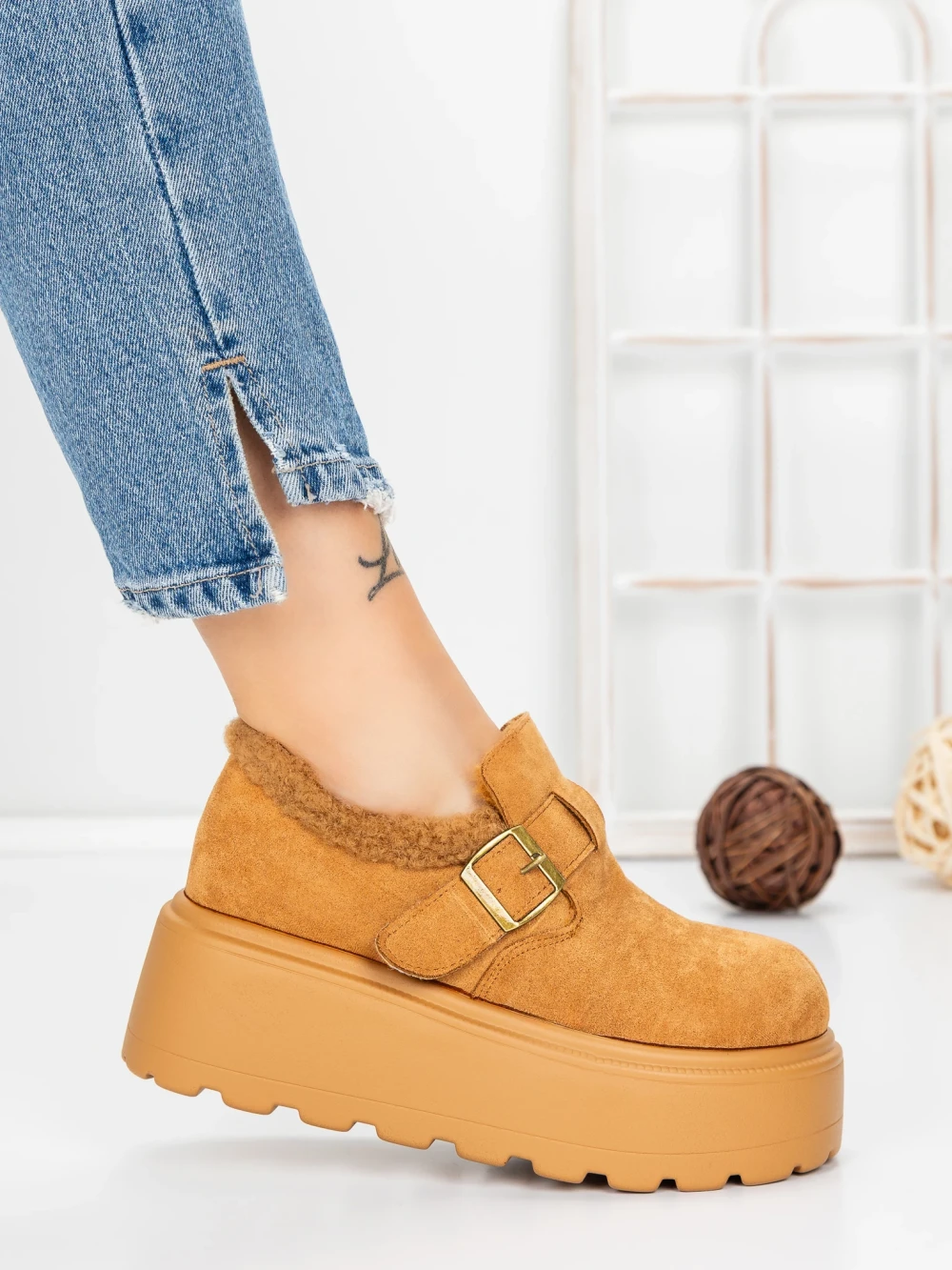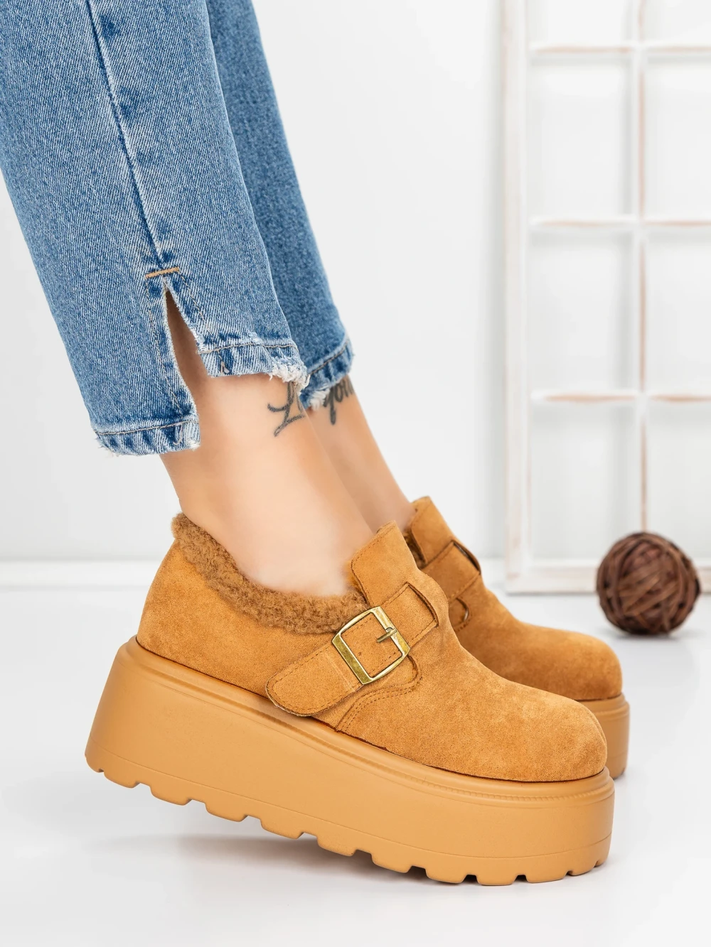 Ženski kratki škornji s platformo 58WL18 Rumena | Mei