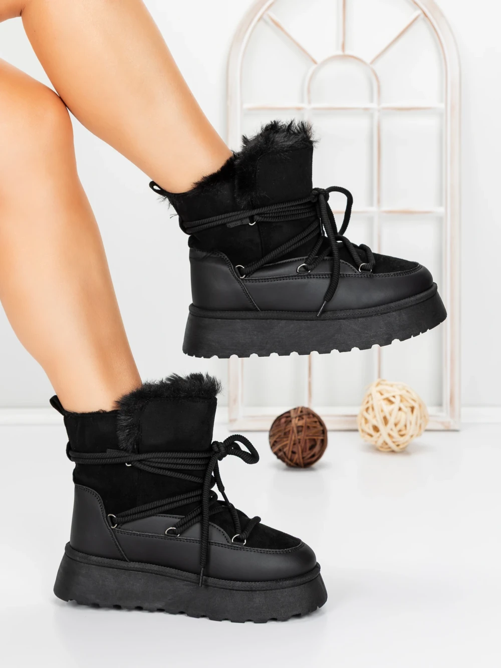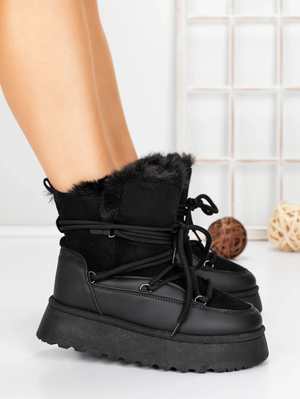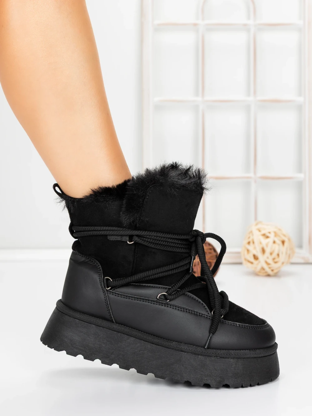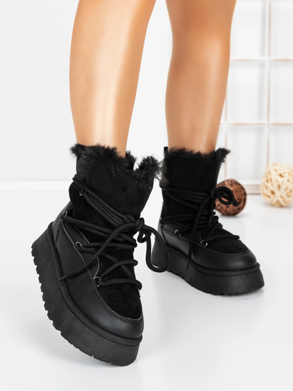 Ženski škornji s platformo 3KD12 Črna | Mei