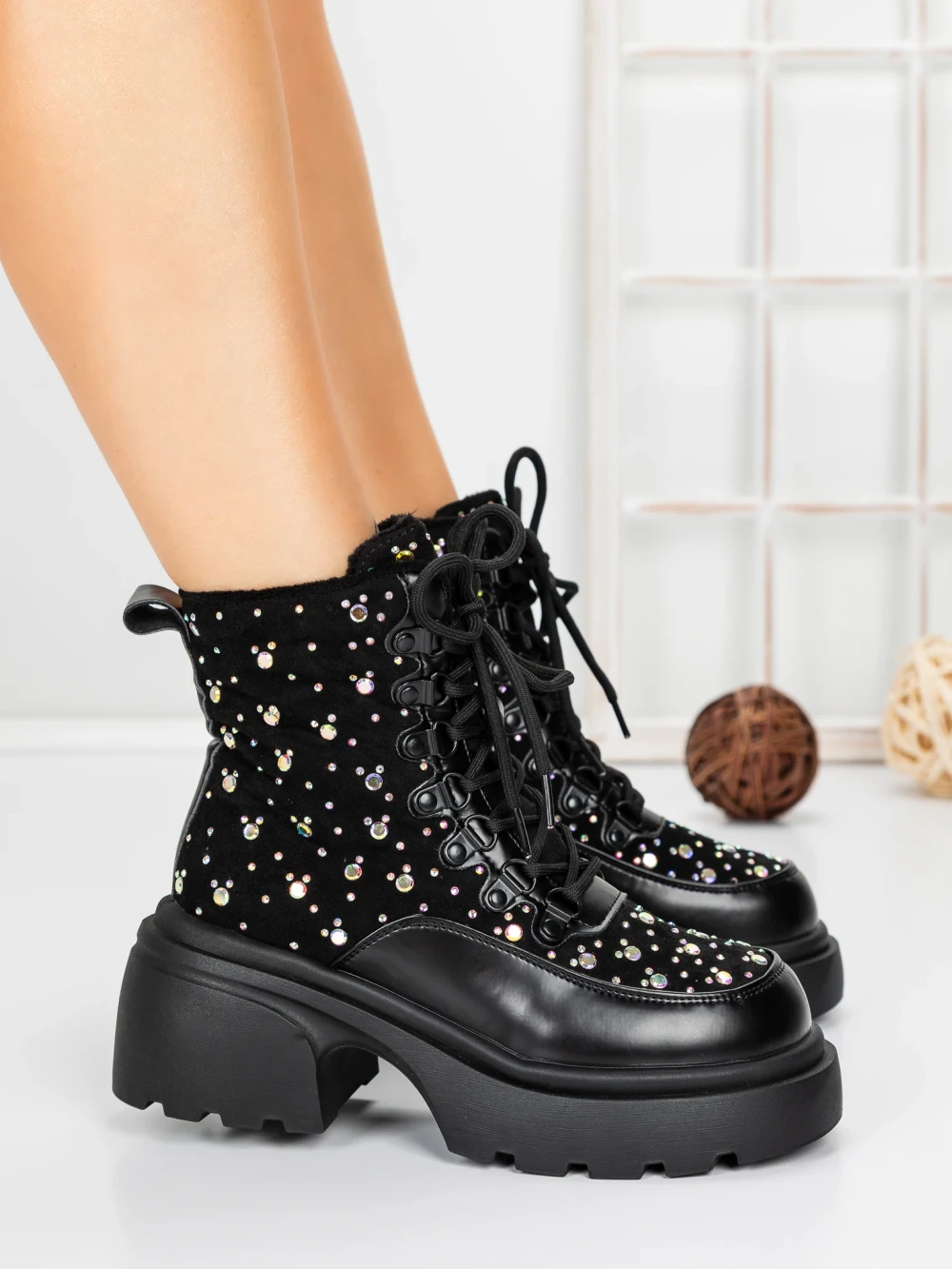 Ženski kratki škornji s platformo 5WL89 Črna | Mei