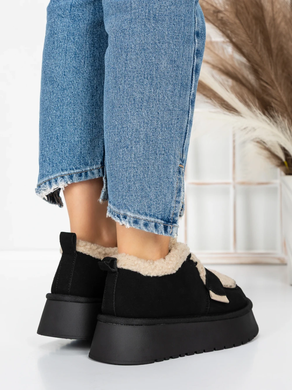 Ženski kratki škornji s platformo 3AL11 Črna | Mei