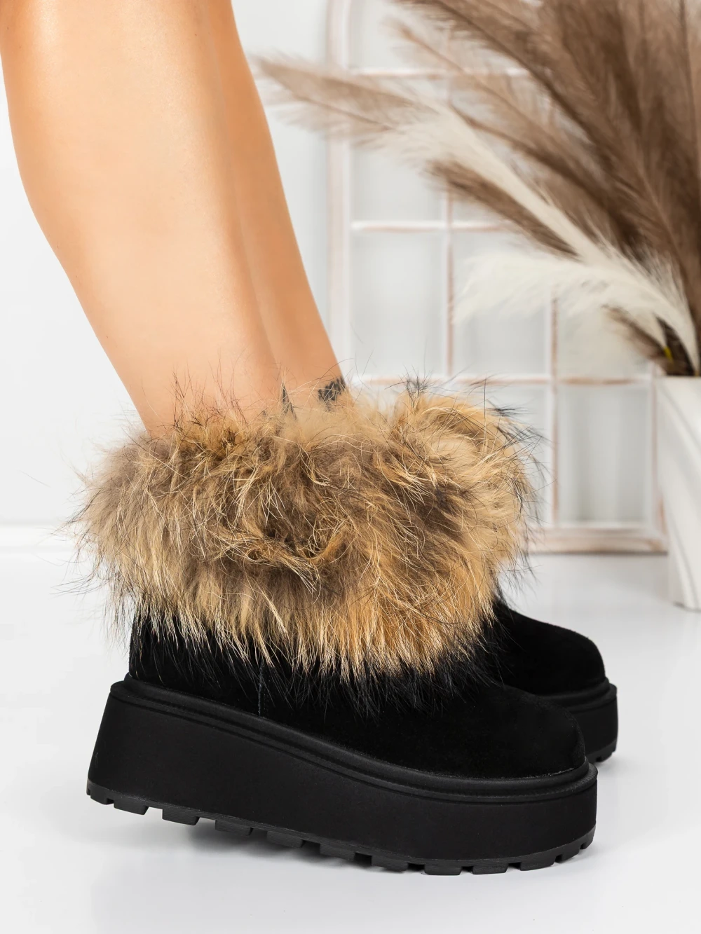 Ženski kratki škornji s platformo 5W82 Črna | Mei