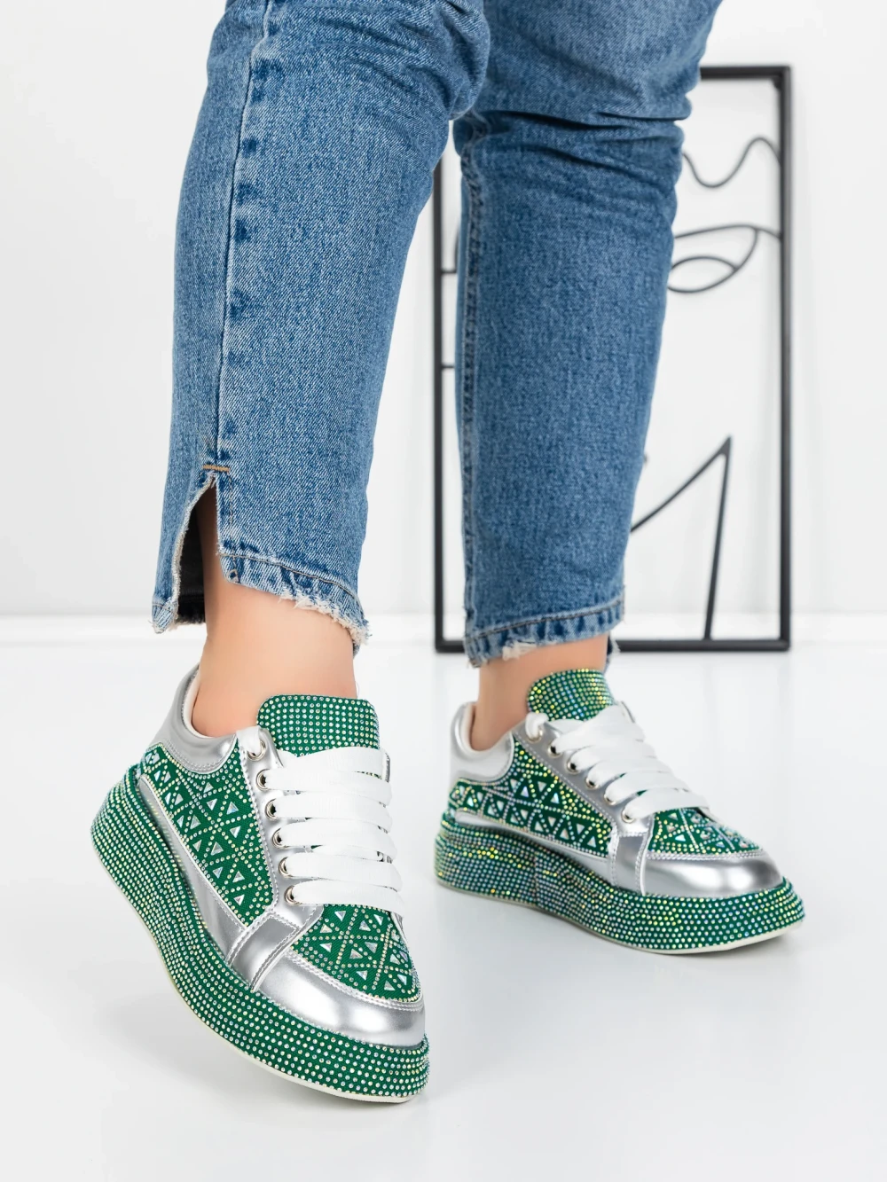 V MeiMall lahko najdete Ženske superge 5WL91 Zelena | Mei. Živahna barva Zelena, skupaj s kakovostnimi materiali in modernim dizajnom, vas bo navdušila! MeiMall je spletna trgovina, ki ponuja široko paleto izdelkov za ženske, moške in otroke. Tukaj lahko najdete čevlje, oblačila, torbe in dodatke. Dostava je hitra, rok vračila pa 14 dni.