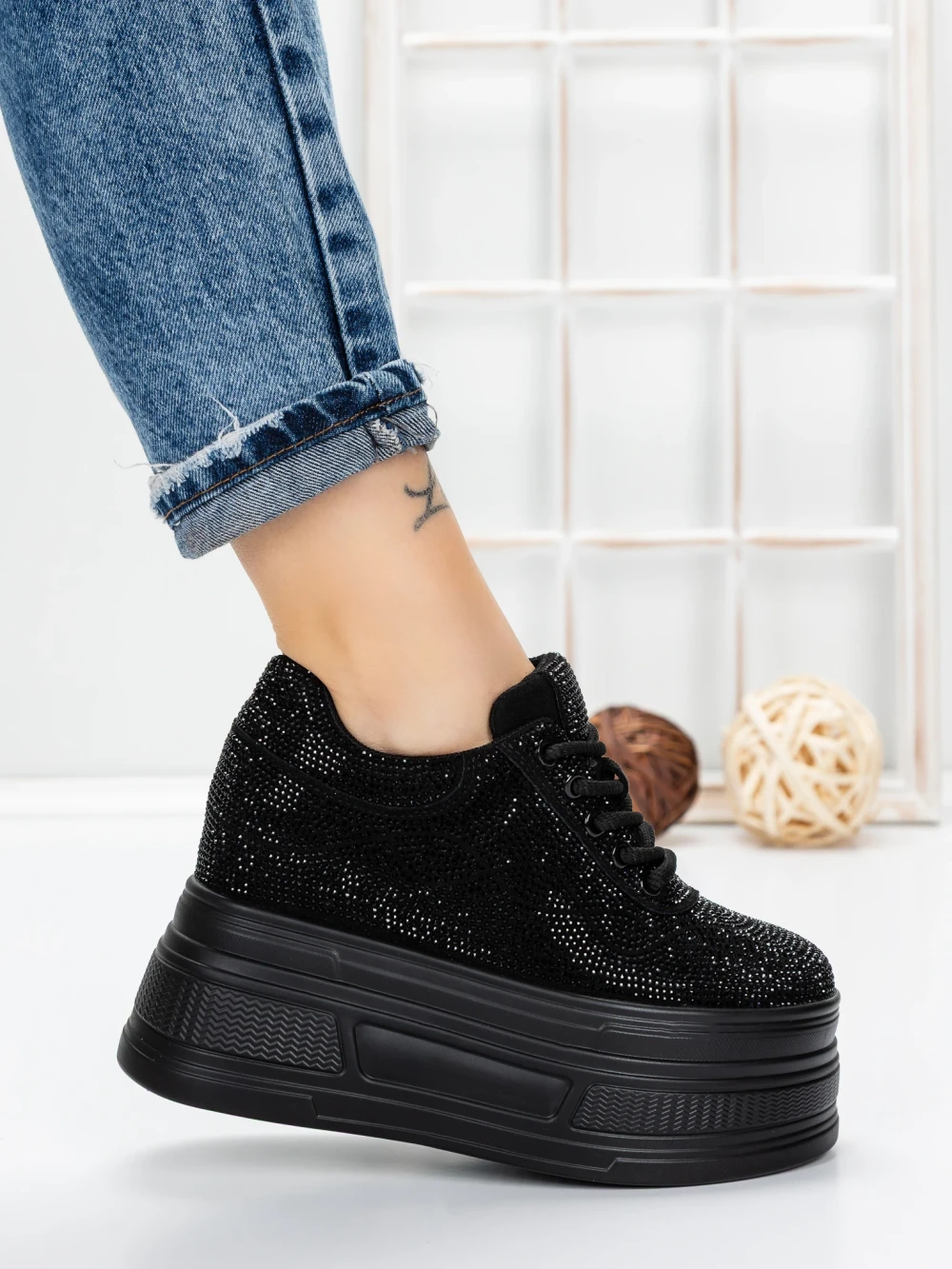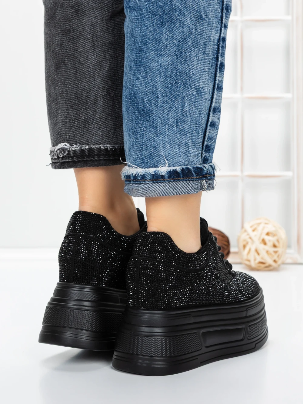 Ženski športni copati s platformo 3591-6 Črna | Mei