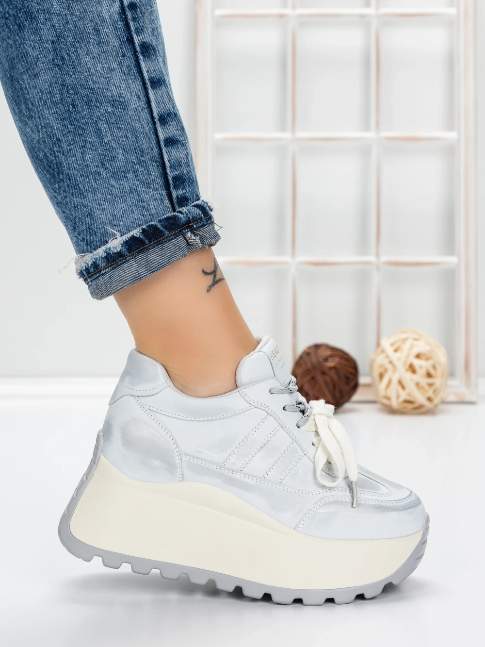 Ženski športni copati s platformo 3570 Srebrna | Mei