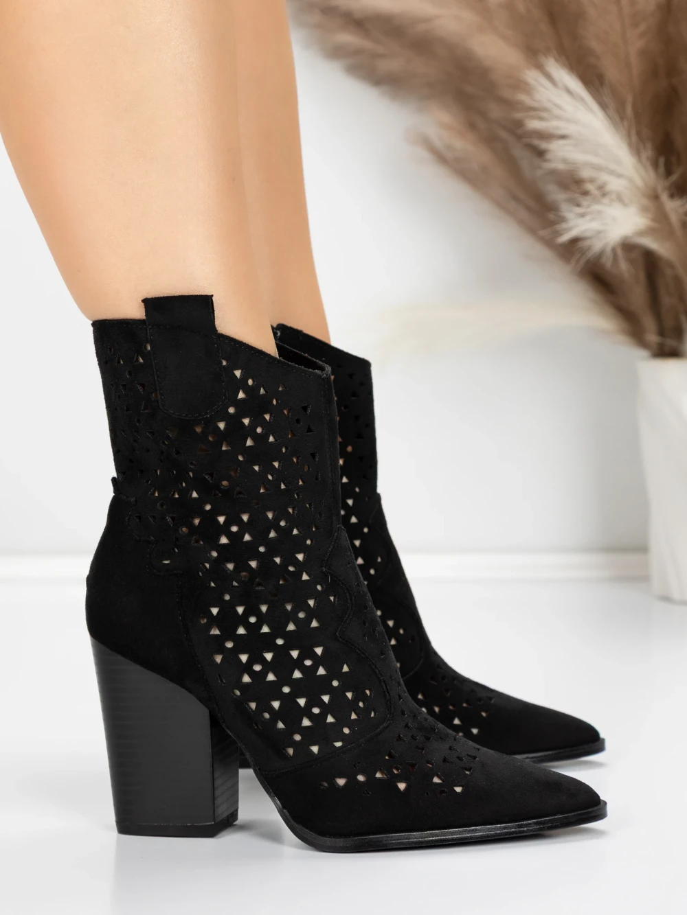 Nizki škornji z debelo peto 23168-1 Črna | Mia Shoes