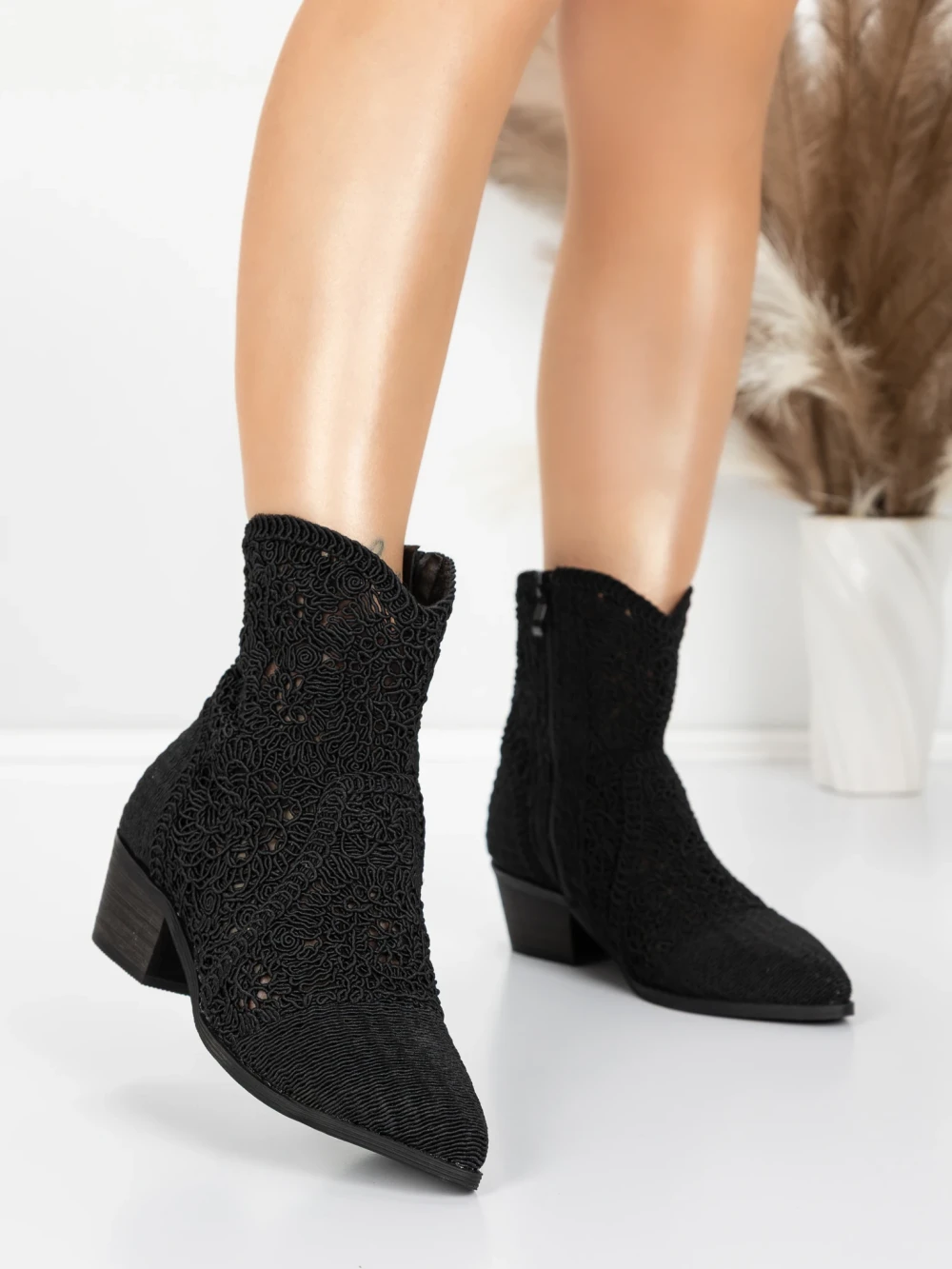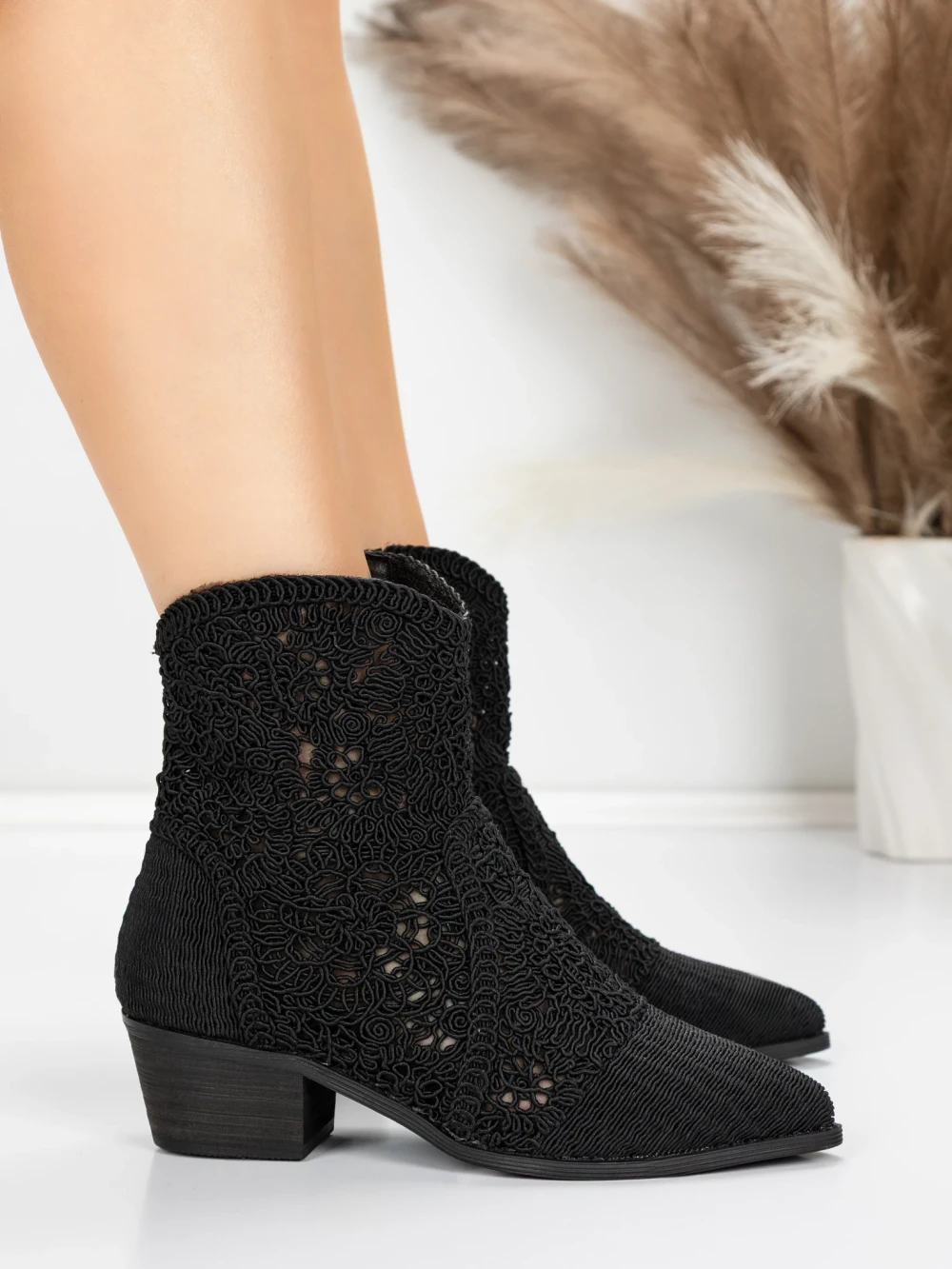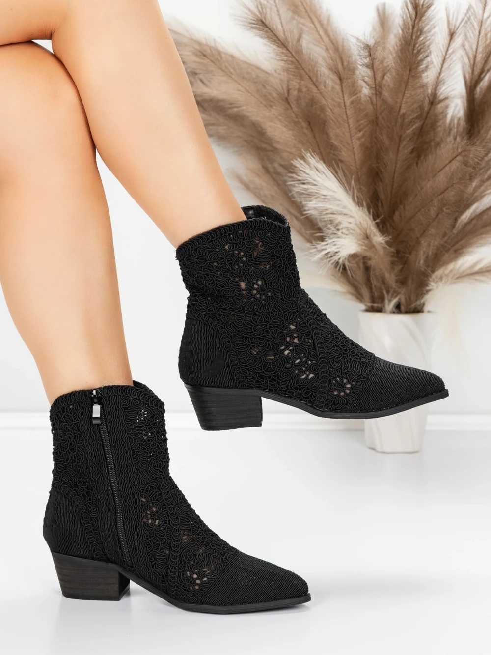 Nizki škornji z debelo peto 3AD69 Črna | Mei
