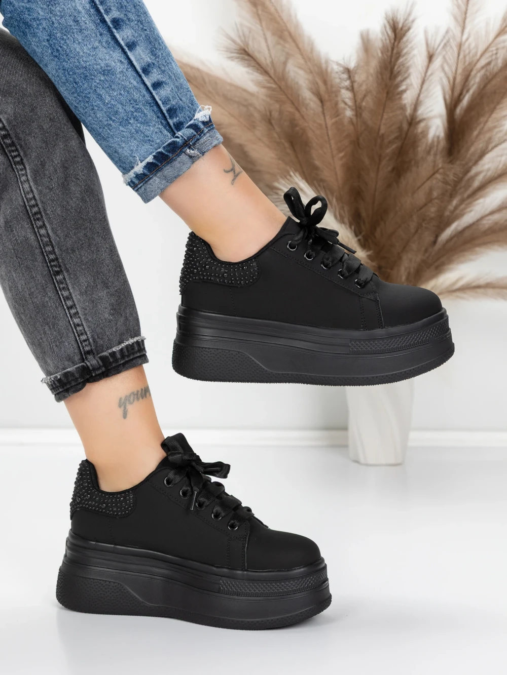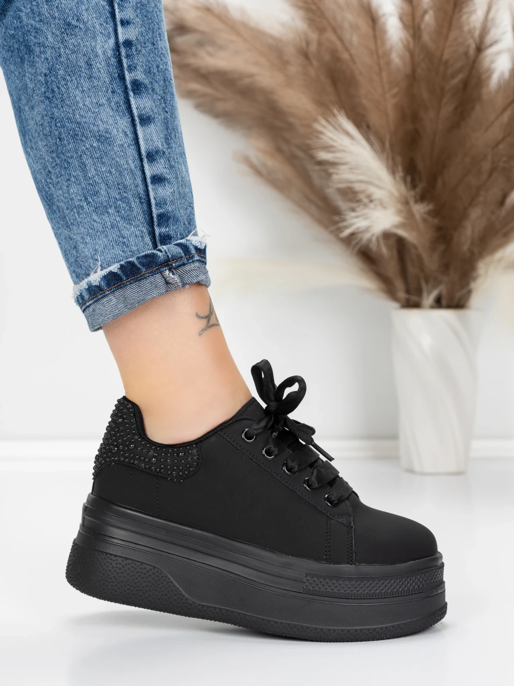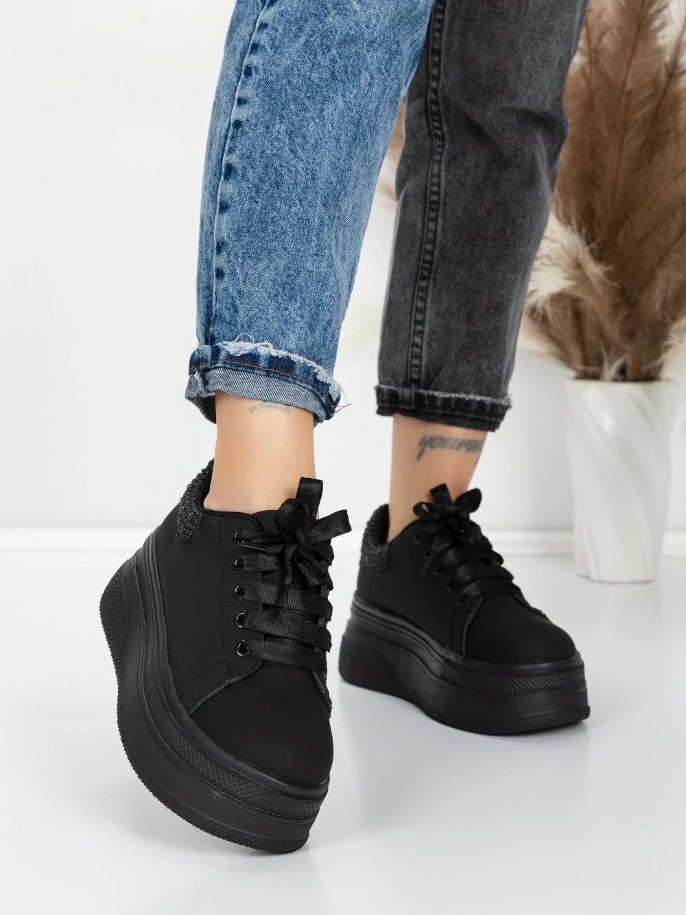 Pantofi Sport Dama cu Platforma 5WL118 BLACK-WHITE | MEI