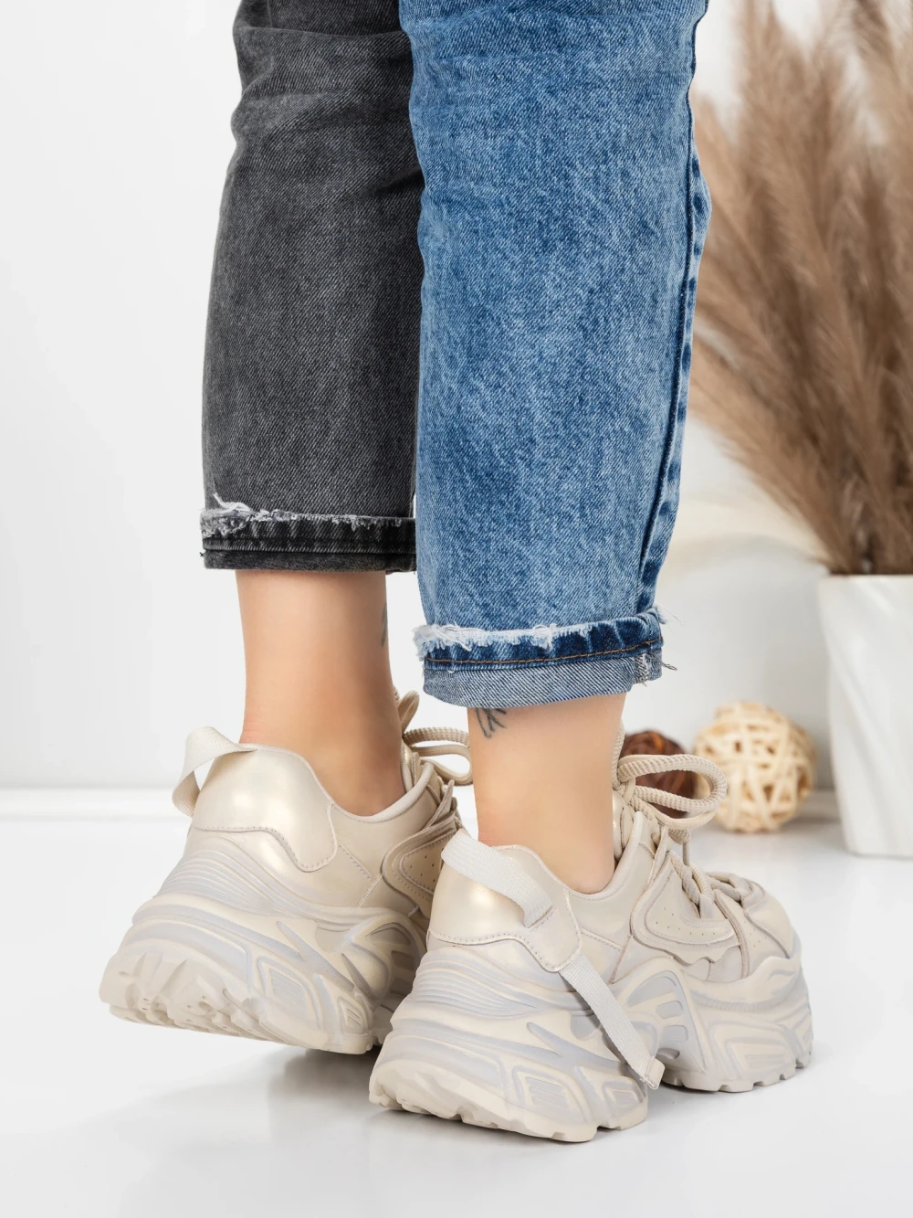 Ženski športni copati iz naravnega usnja 918-1 Šampanjec | Franco Gerardo