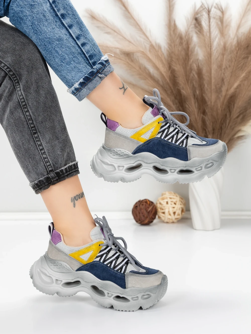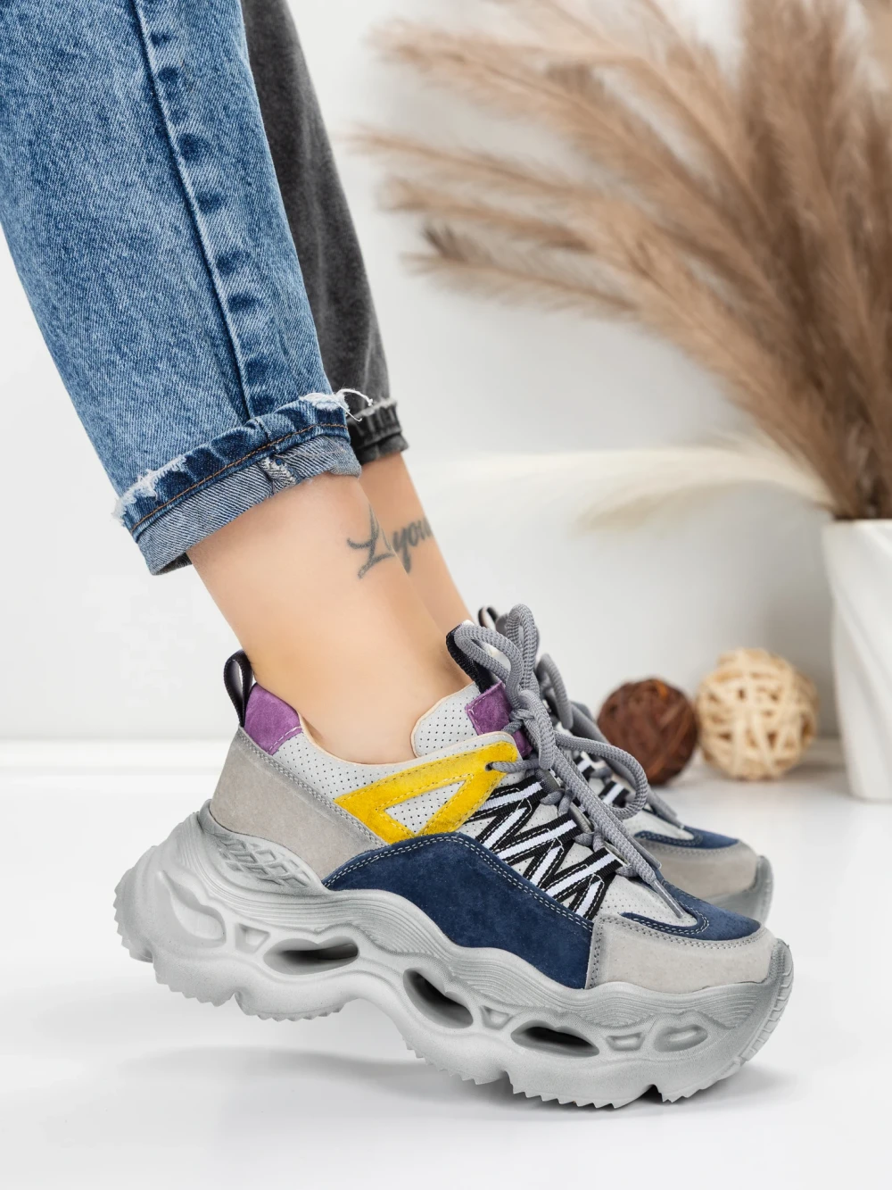 Ženski športni copati iz naravnega usnja HY6383 Temno Modra-Vijolična | Franco Gerardo