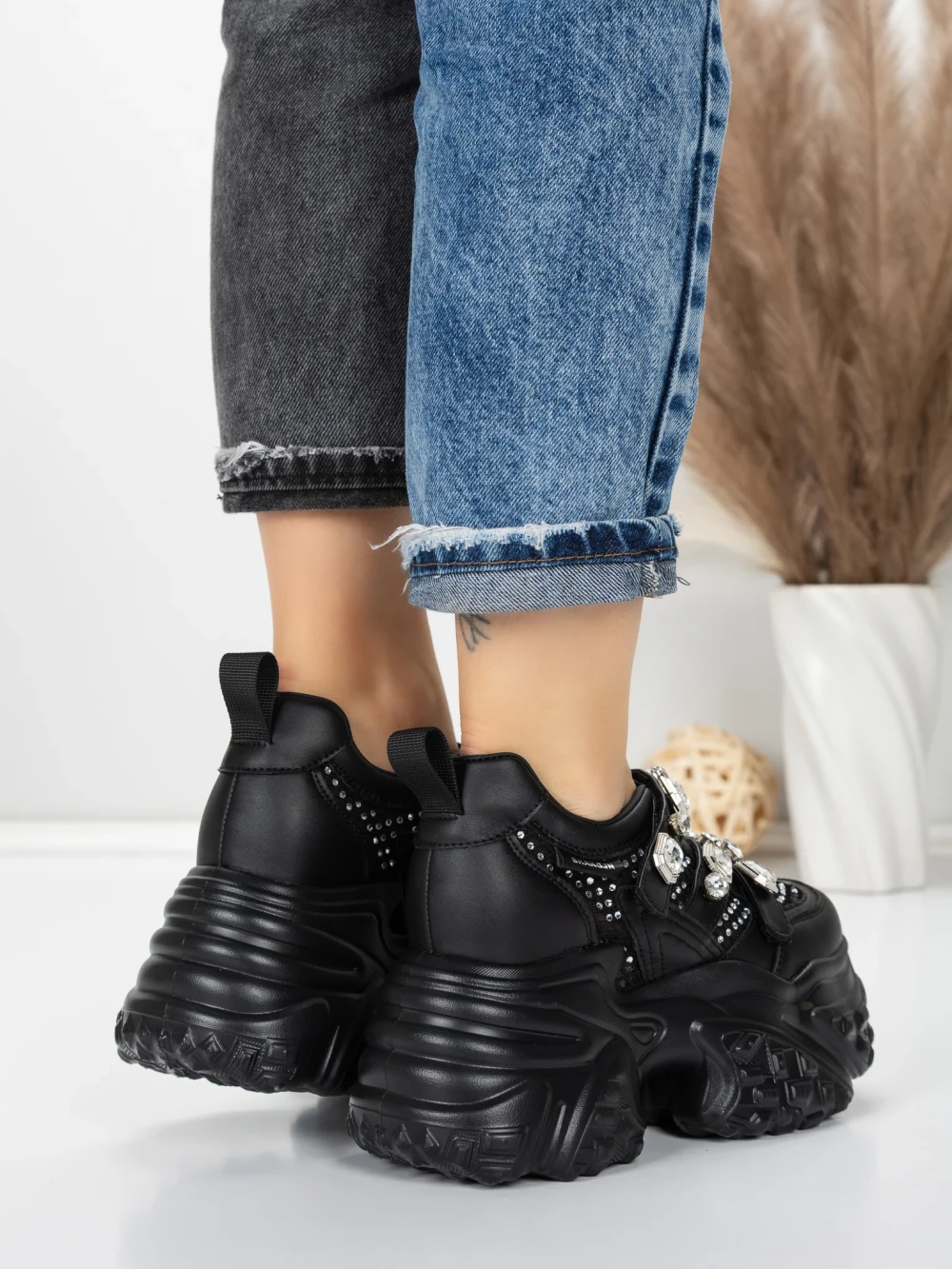 Ženski športni copati s platformo 6166-80 Črna | Mei