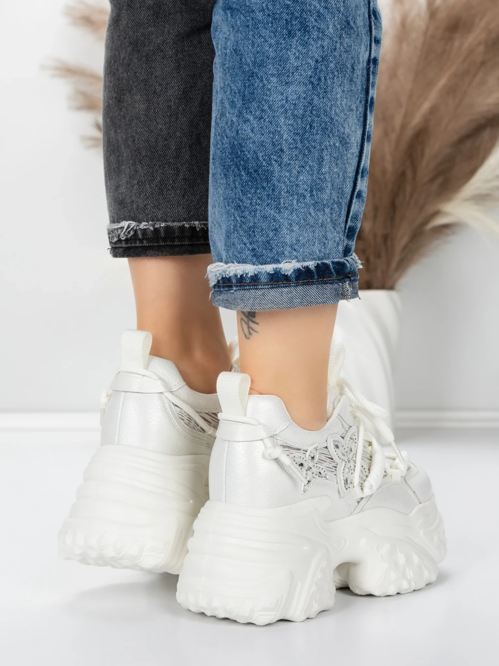Ženski športni copati s platformo 6166-88 Bela | Mei