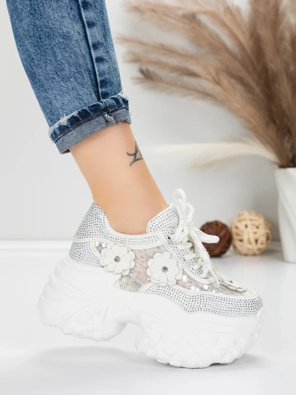 Ženski športni copati s platformo 3596 Srebrna | Mei