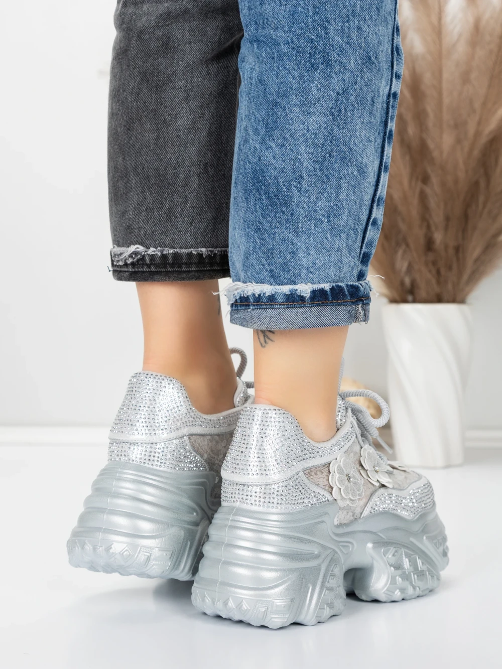 Ženski športni copati s platformo 6166-87 Srebrna | Mei