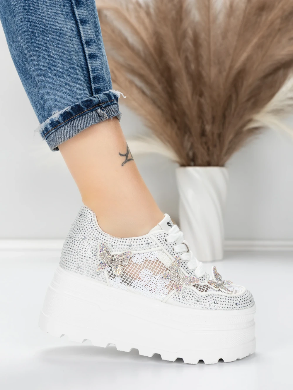 Ženski športni copati s platformo 6208-36 Bela | Mei
