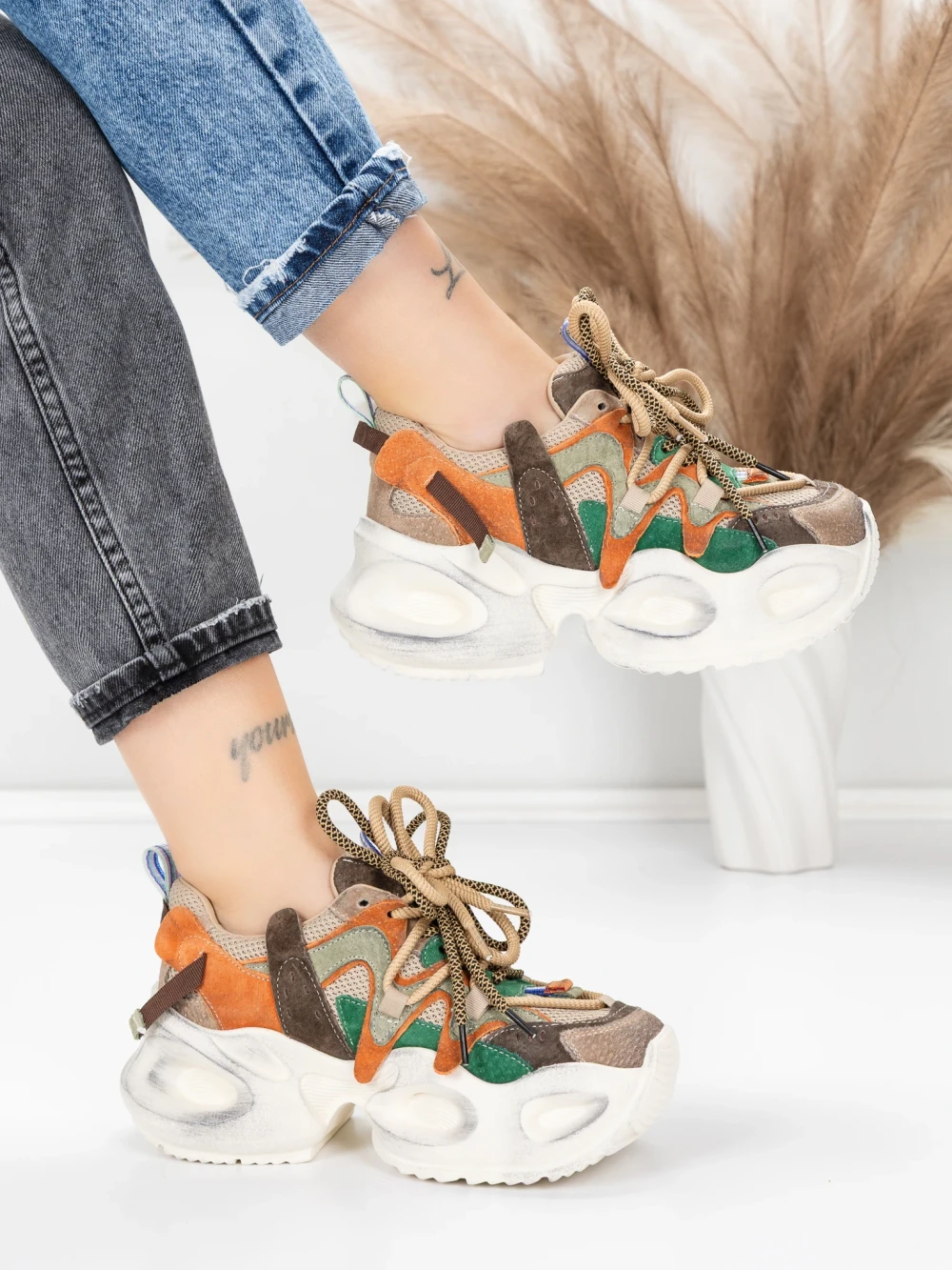 V MeiMall lahko najdete Ženski športni copati iz naravnega usnja HY8988-1 Rjava-Zelena | Franco Gerardo. Živahna barva Rjava-Zelena, skupaj s kakovostnimi materiali in modernim dizajnom, vas bo navdušila! MeiMall je spletna trgovina, ki ponuja široko paleto izdelkov za ženske, moške in otroke. Tukaj lahko najdete čevlje, oblačila, torbe in dodatke. Dostava je hitra, rok vračila pa 14 dni.