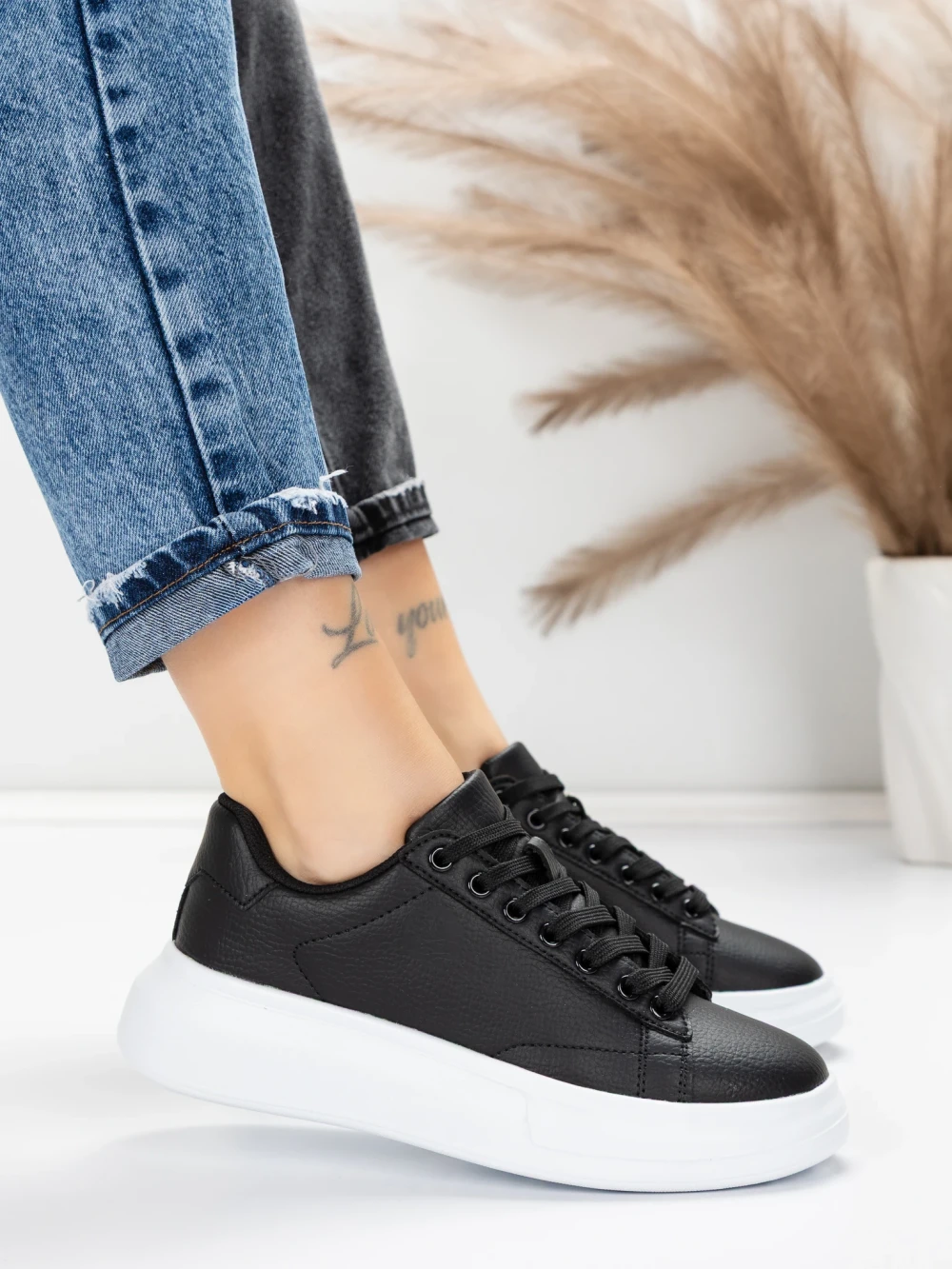 Ženski športni copati s platformo 5WL50 Črna-Bela | Mei