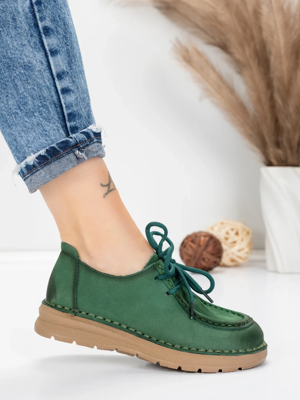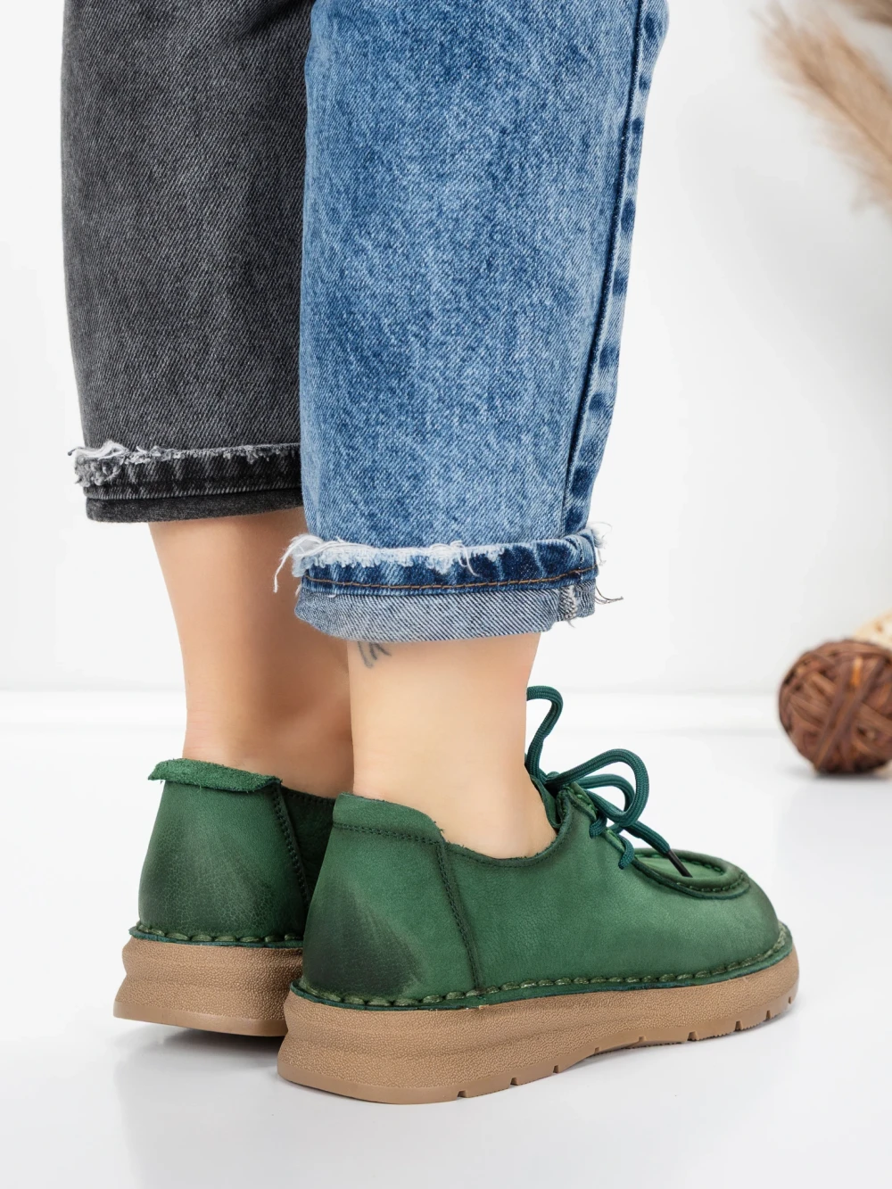 Ženski čevlji za prosti čas iz naravnega usnja 8887 Zelena | Formatione