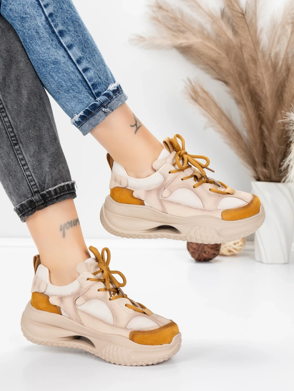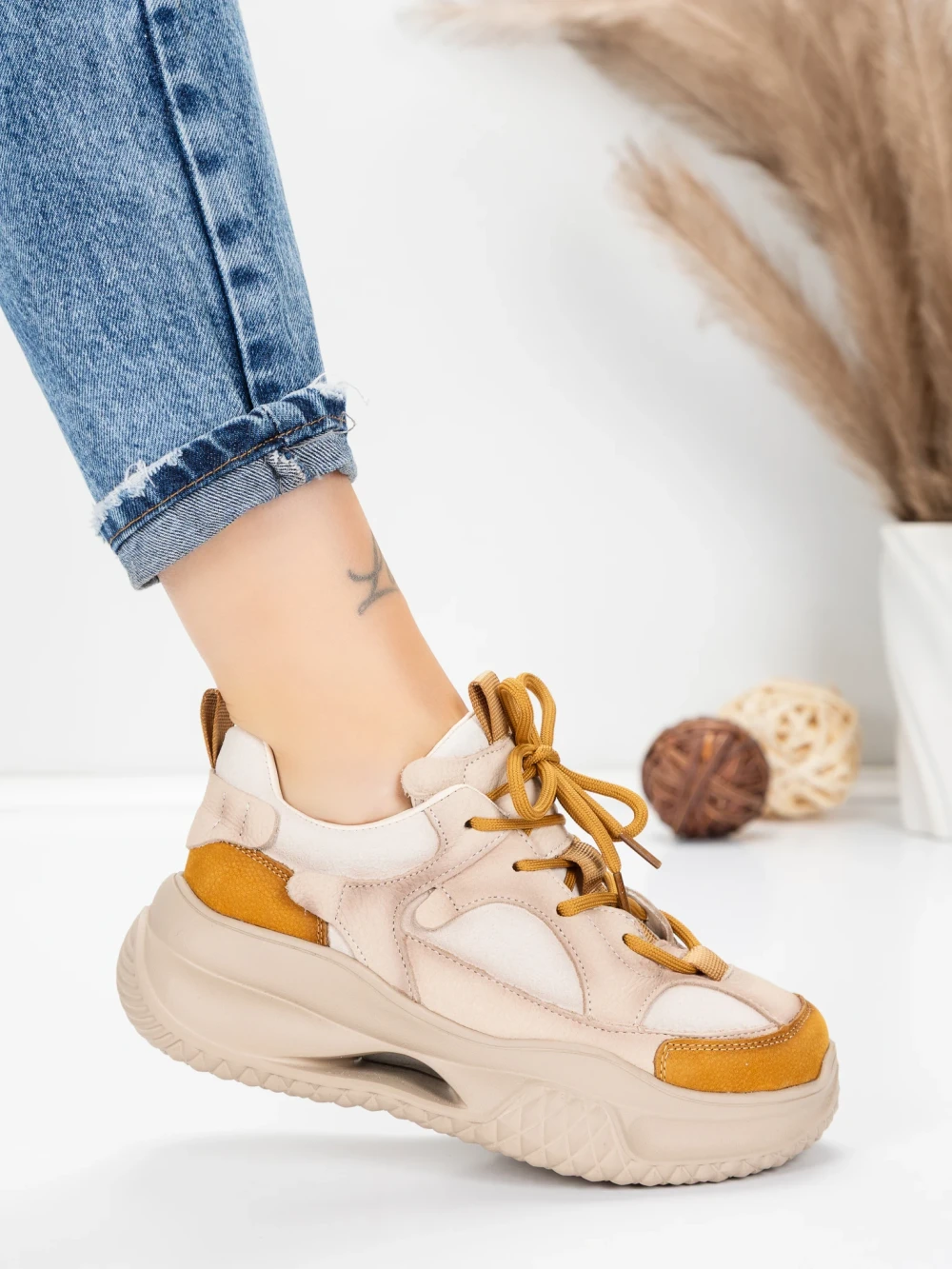 V MeiMall lahko najdete Ženski športni copati iz naravnega usnja 2576 Kremna-Rumena | Advancer. Živahna barva Kremna-Rumena, skupaj s kakovostnimi materiali in modernim dizajnom, vas bo navdušila! MeiMall je spletna trgovina, ki ponuja široko paleto izdelkov za ženske, moške in otroke. Tukaj lahko najdete čevlje, oblačila, torbe in dodatke. Dostava je hitra, rok vračila pa 14 dni.