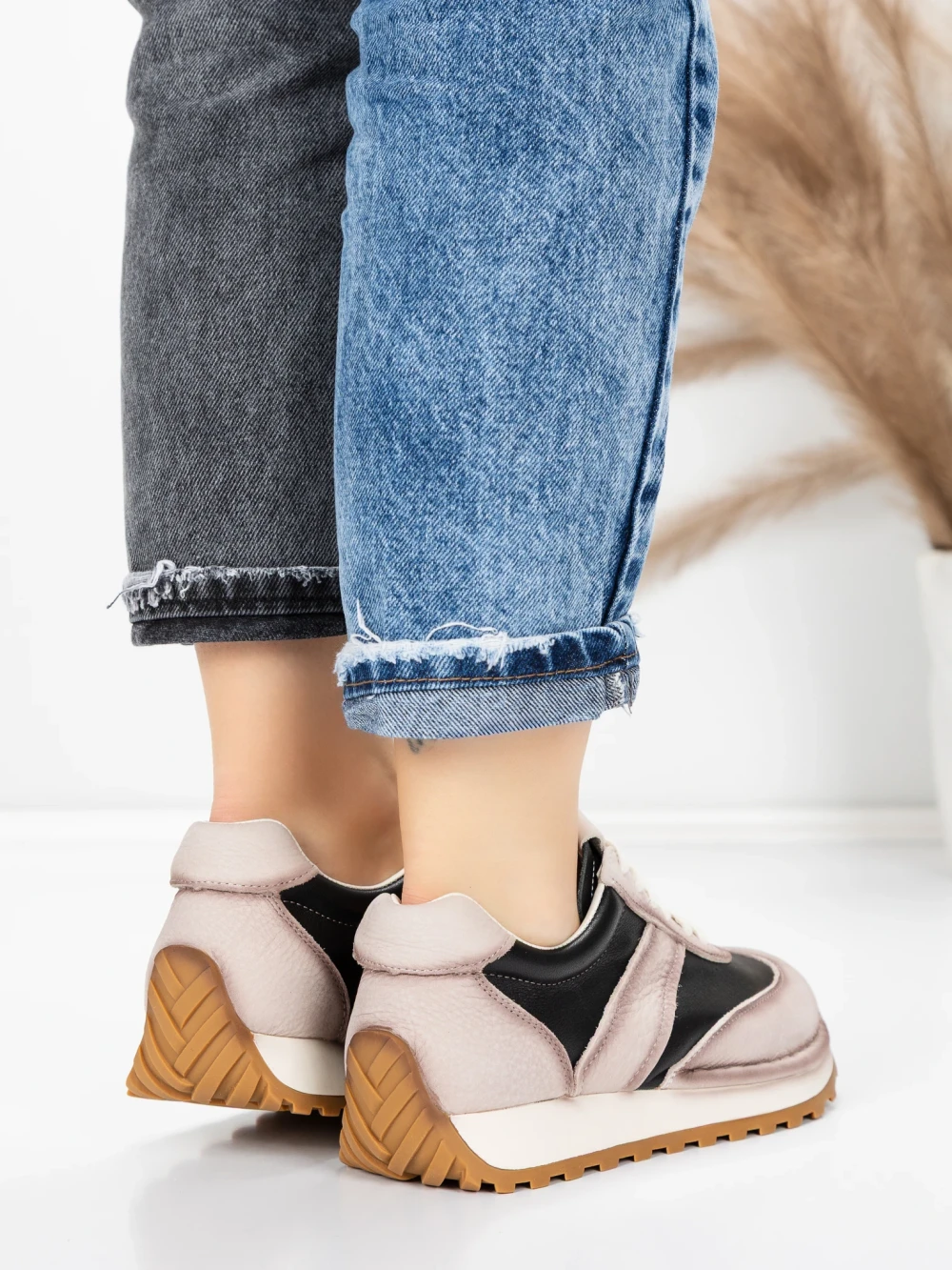 Ženski športni copati iz naravnega usnja KM9218 Črna-Kremna | Advancer