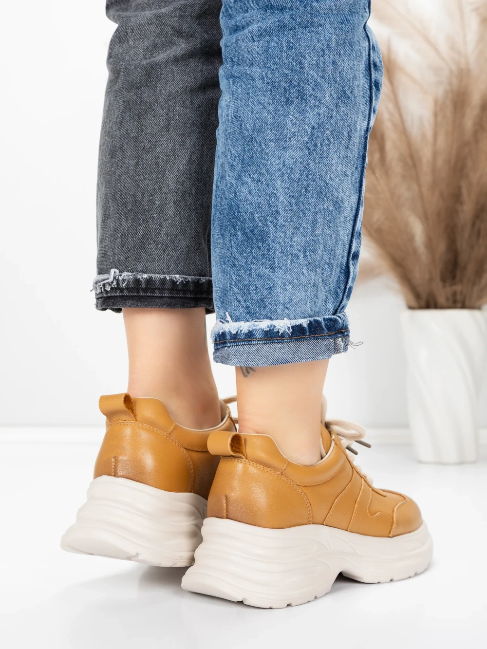 Ženski športni copati iz naravnega usnja 10785 Rumena | Franco Gerardo