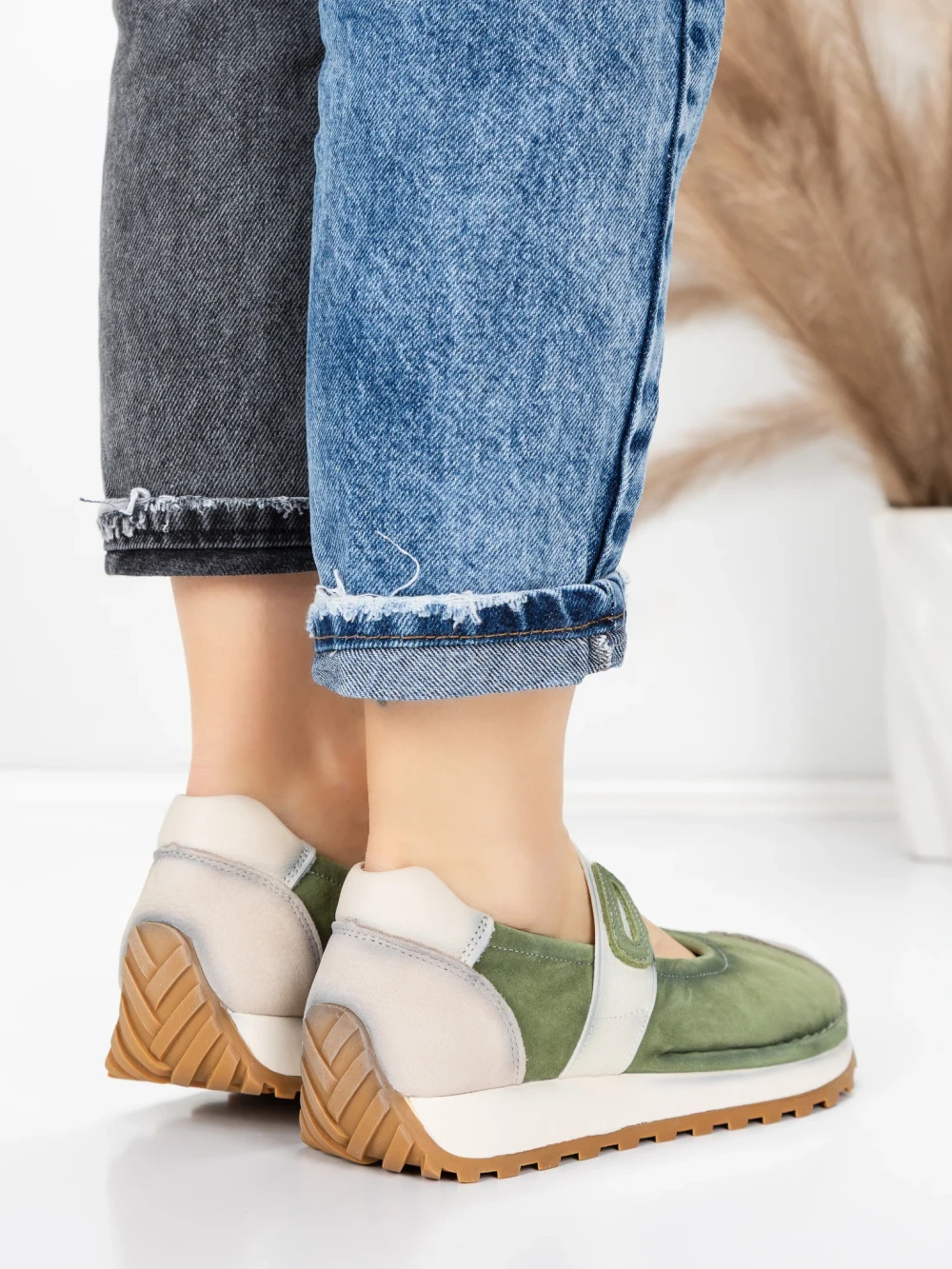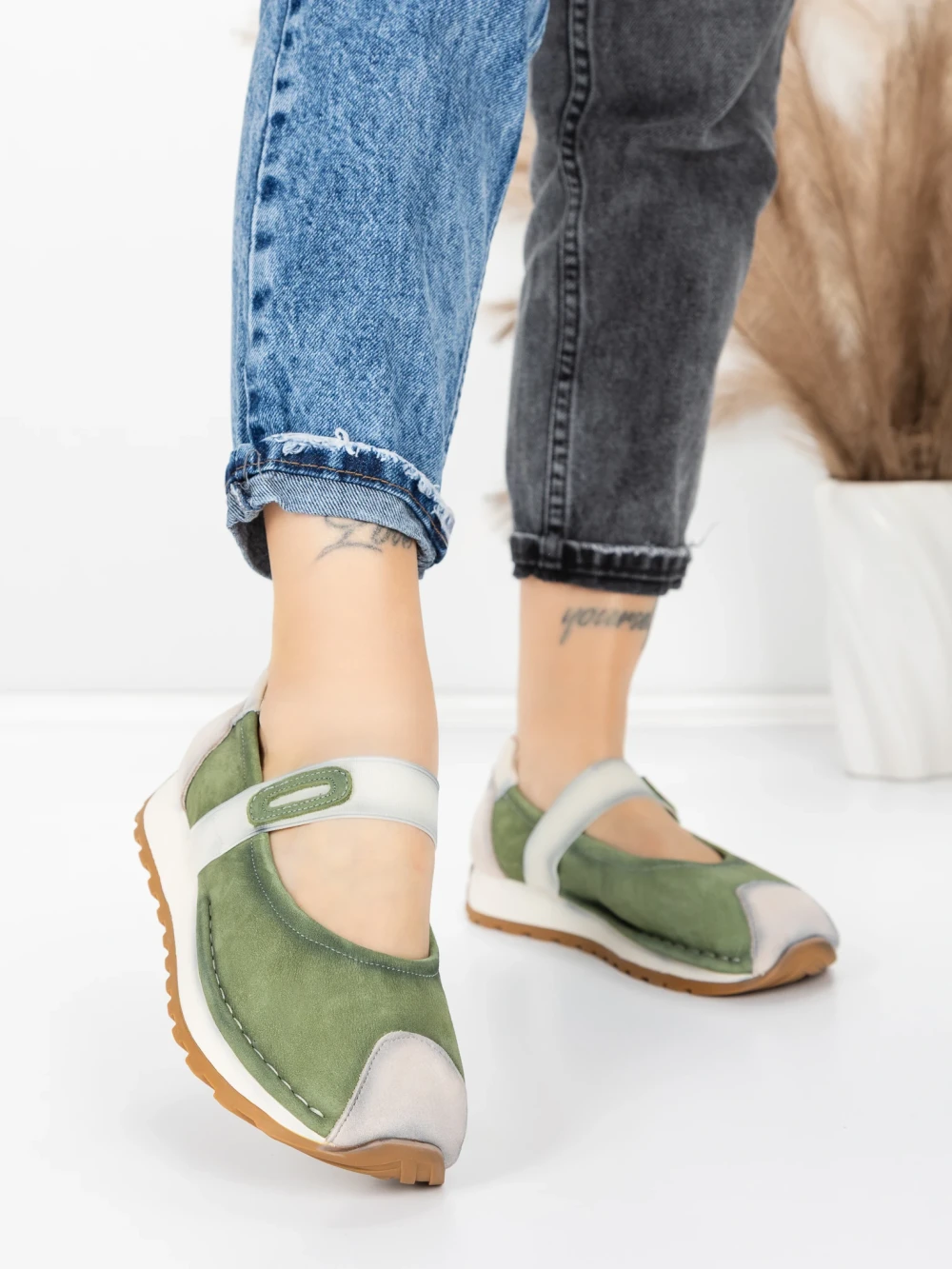 Ženski čevlji za prosti čas iz naravnega usnja KM9205 Zelena | Advancer