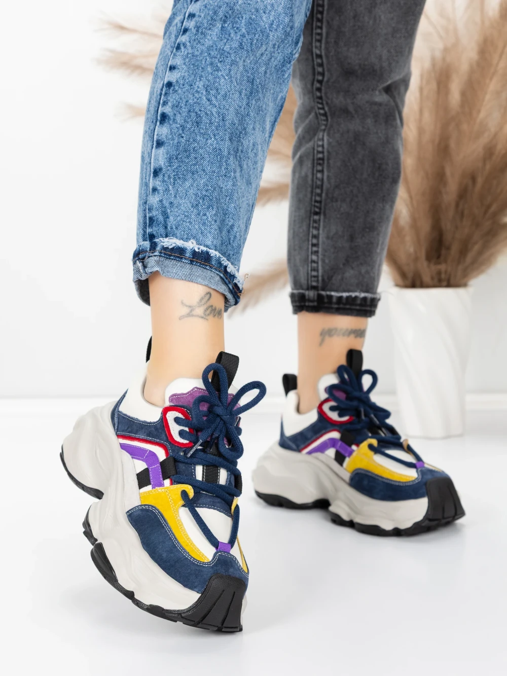 Ženski športni copati iz naravnega usnja HY1369 Modra-Rumena | Franco Gerardo