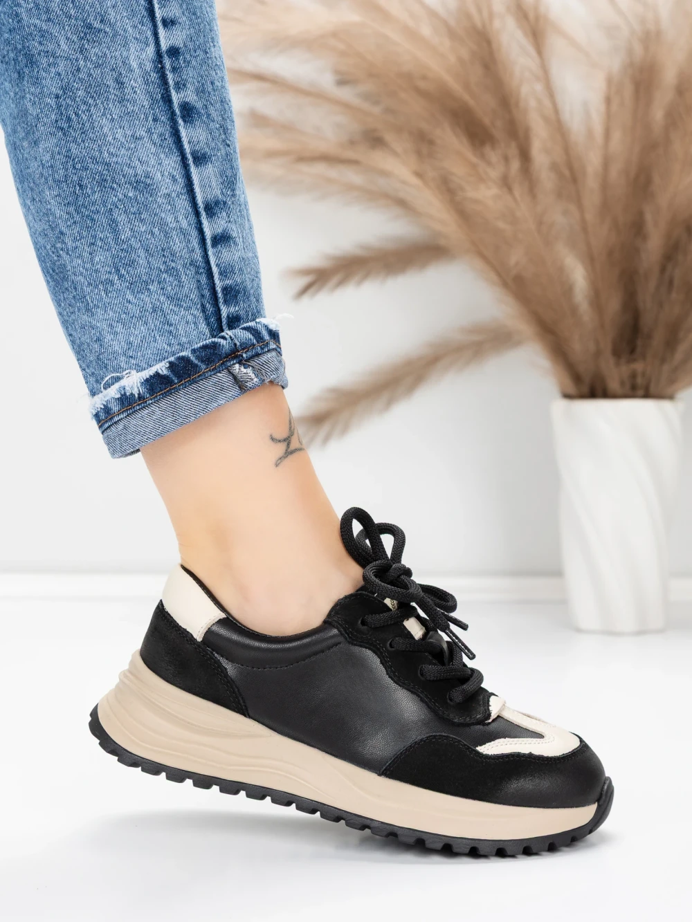 Ženski športni copati iz naravnega usnja 572305 Črna-Kremna | Franco Gerardo
