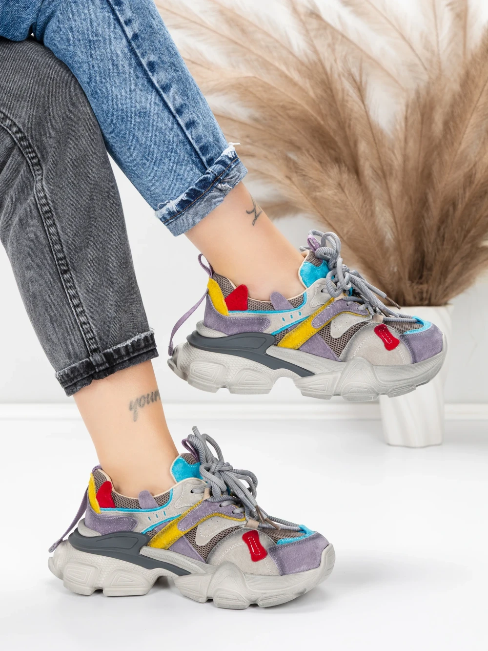 Ženski športni copati iz naravnega usnja HY5782 Vijolična-Modra | Franco Gerardo