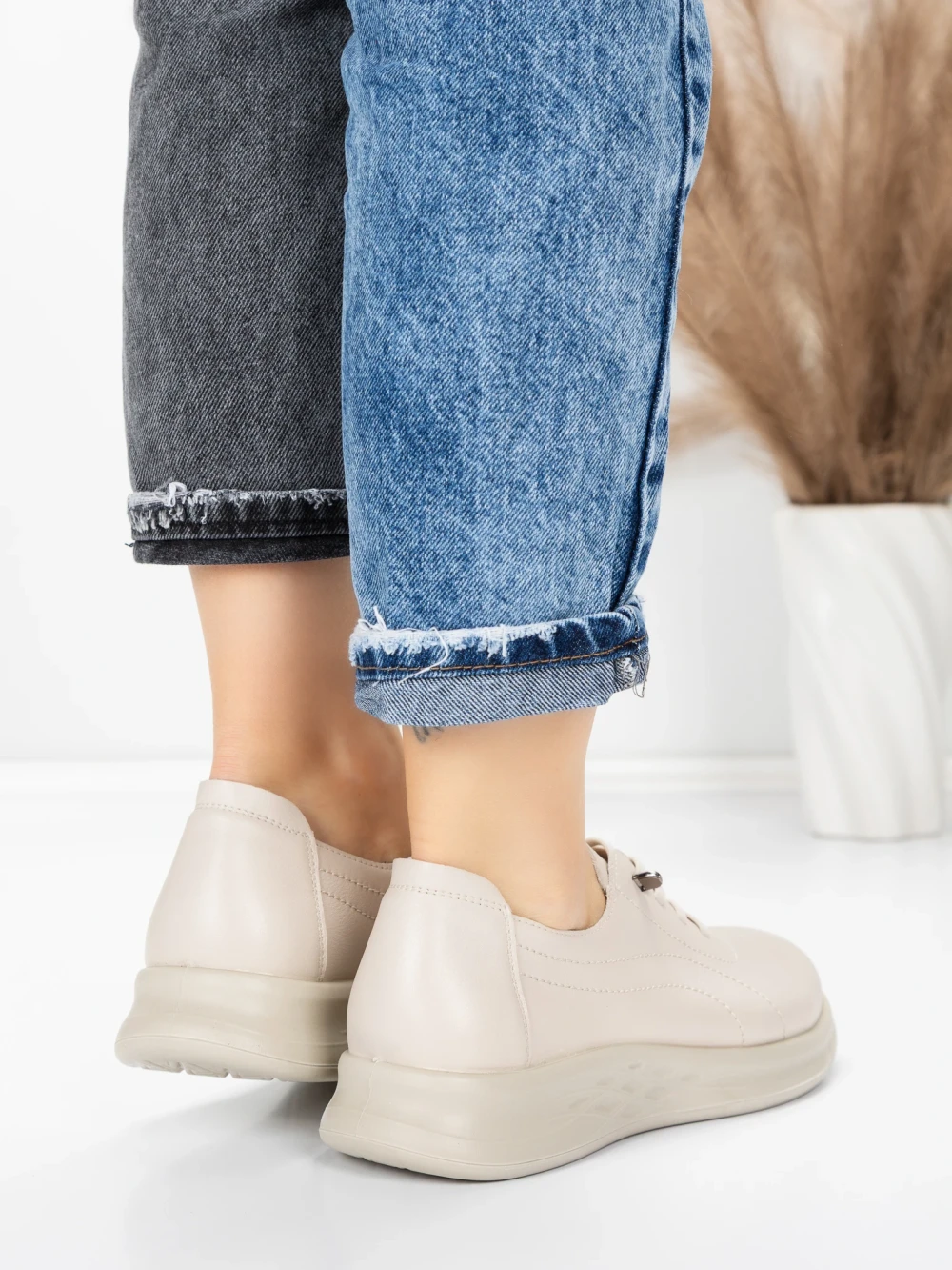 Ženski čevlji za prosti čas iz naravnega usnja 5712567 Kremna | Advancer