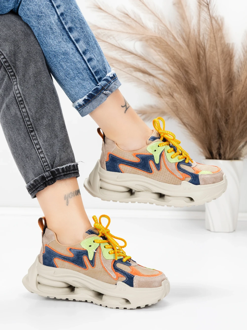 Ženski športni copati iz naravnega usnja 36823-1 Oranžna | Advancer
