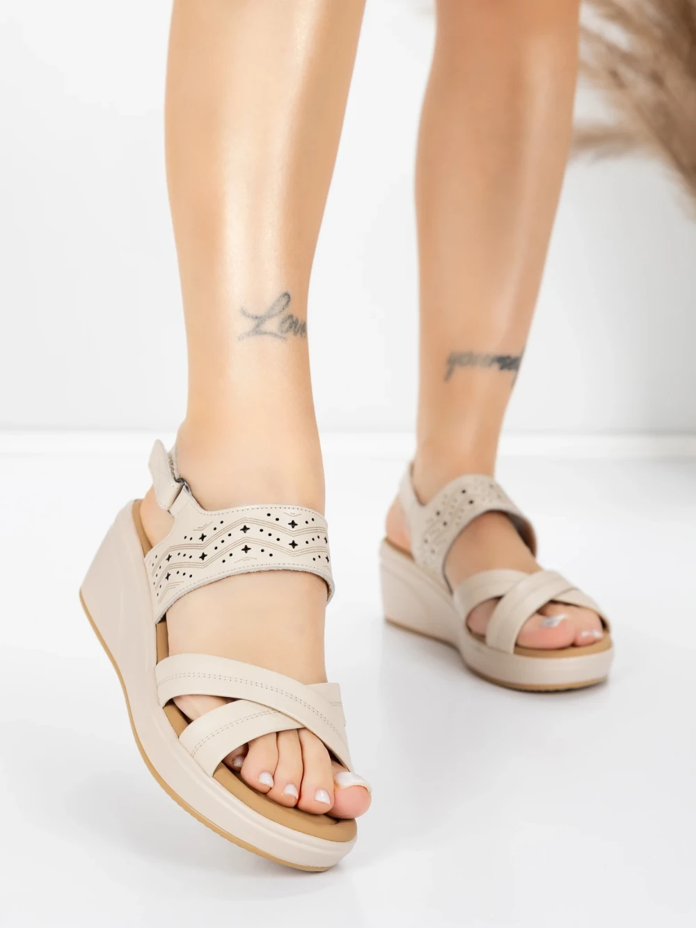 ženski sandali iz pravega usnja 9573 Kremna | Advancer